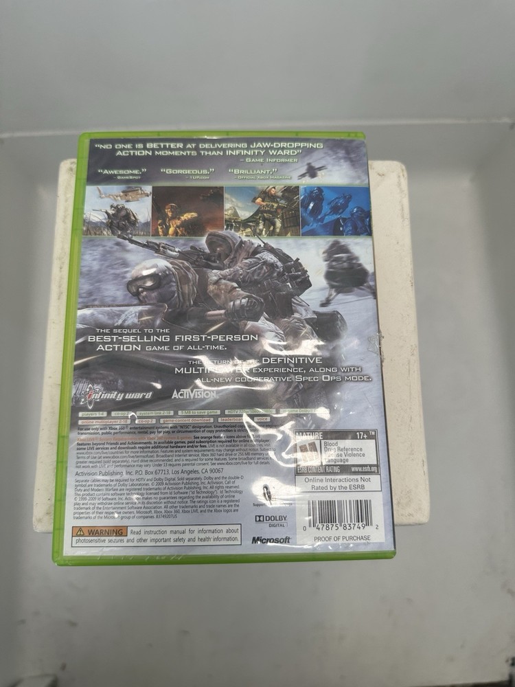 Country/Region of Manufacture:United StatesPublisher:ActivisionVideo Game Series:Call of DutyGenre:Shooter, Action & Adventure, WarRating:M - MatureSeller Notes:“Untested and unsure of quality”Game Name:Call of Duty: Modern Warfare 2Release Year:2009Platform:Microsoft Xbox 360