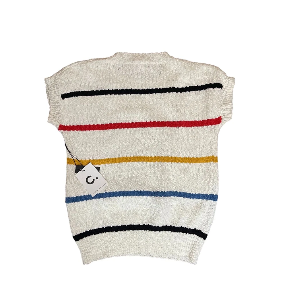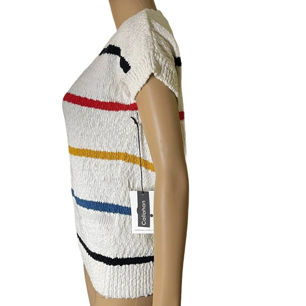 Callahan Revolve Cotton Nubby Texture Sweater Multicolor Striped - NEW WITH TAGS! SIZE SMALL Featuring a unique nubby texture and fun multicolor striped pattern, the Callahan Cotton Short Sleeve Sweater is a must-have for any outfit. Crafted from 100% cotton and soft to the touch, this timeless sweater is perfect for elevating your casual look. With short sleeves that provide great flexibility and breathability, you'll be wearing this classic piece all season long. Add a touch of timeless style to your wardrobe with the Callahan Cotton Short Sleeve Sweater. -Callahan -Style #5208 -Cotton -Nubby texture -Short sleeves -Multicolor striped -Sweater, New. -Measurements (approximate in inches taken flat) Bust 18.75/Waist 17.5/Length 23 Shoulder to hem #Sale #Style #Fashionista #FashionBlogger #OutfitGoals #Bold #Bright