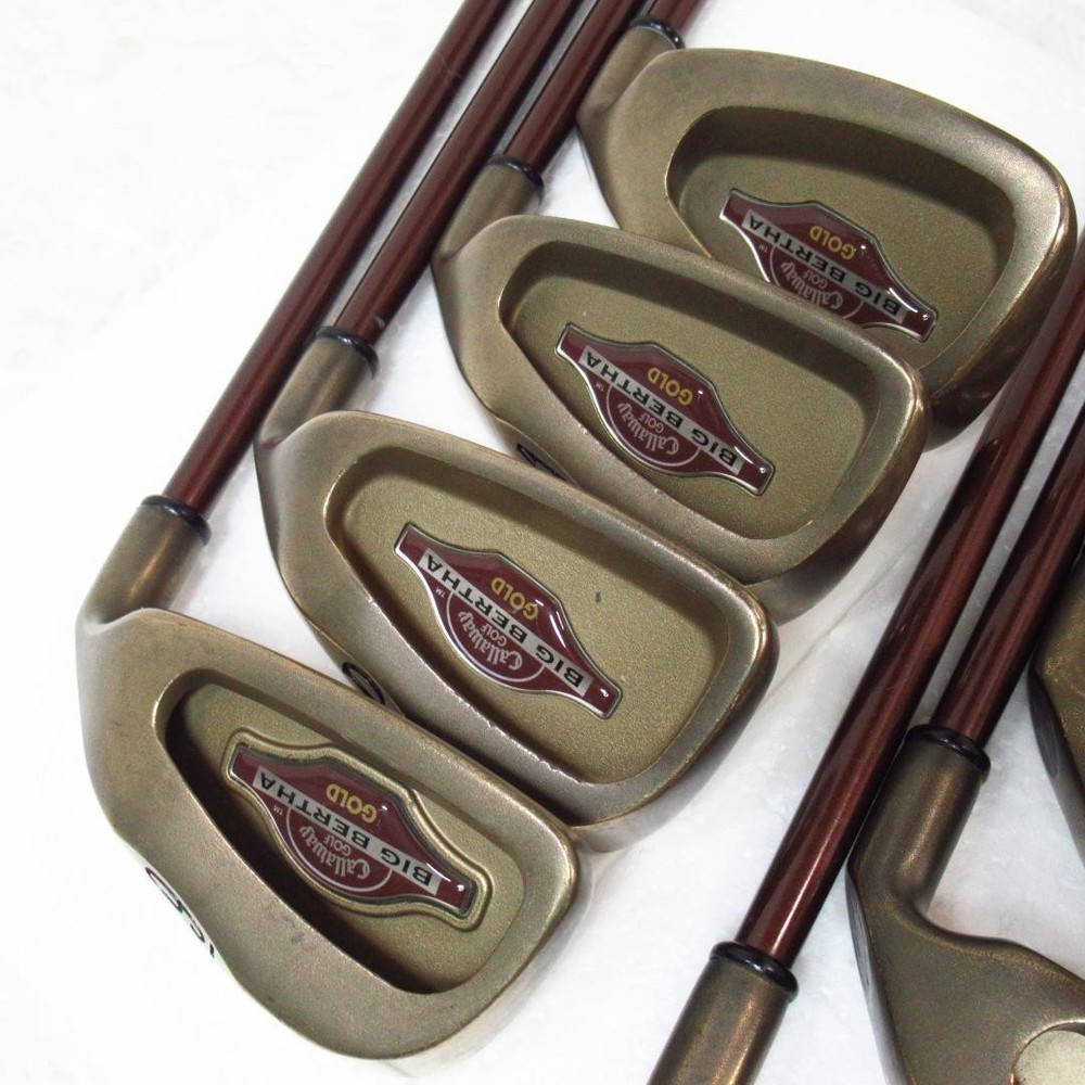 Callaway Big Bertha Gold Iron Set 9pcs Men’s Golf Clubs Used Key Features Callaway Big Bertha Gold Men's Iron Set - 9 Clubs This is a rare and highly sought-after Callaway Big Bertha Gold iron set, consisting of 9 clubs (4-PW, AW, SW). Made for men, with genuine carbon shafts (SUPER BBI UL) and regular flex, right-handed. The clubs show signs of use such as minor scratches and wear but remain in good condition with no impact on playability. The original grips are well-maintained. Carefully cleaned and packaged for safe delivery. Ideal for collectors or golfers seeking a classic set. Item Specifics: Brand: Callaway Model: Big Bertha Gold Type: Iron Set Number of Clubs: 9 Flex: Regular Gender: Men Handedness: Right-handed Shaft Material: Carbon Specifications Brand Callaway Golf Country Japan Product Description Item Title Callaway Big Bertha Gold Iron Set Payment Supports managed payments Please pay within 5 days after auction is finished. About Us We are located in Japan. It's our pleasure to make you happy by proposing our recommend item. If you have any questions or request about items, please feel free to ask us. International Buyers - Please Note: -Import duties, taxes, and charges are not included in the item price or shipping charges. These charges are the buyer's responsibility. -Please check with your country's customs office to determine what these additional costs will be prior to bidding/buying. -These charges are normally collected by the delivering freight (shipping) company or when you pick the item up - do not confuse them for additional shipping charges. -We do not mark merchandise values below value or mark items as - gifts - The US and International government regulations prohibit such behavior. Thank you for your understanding.