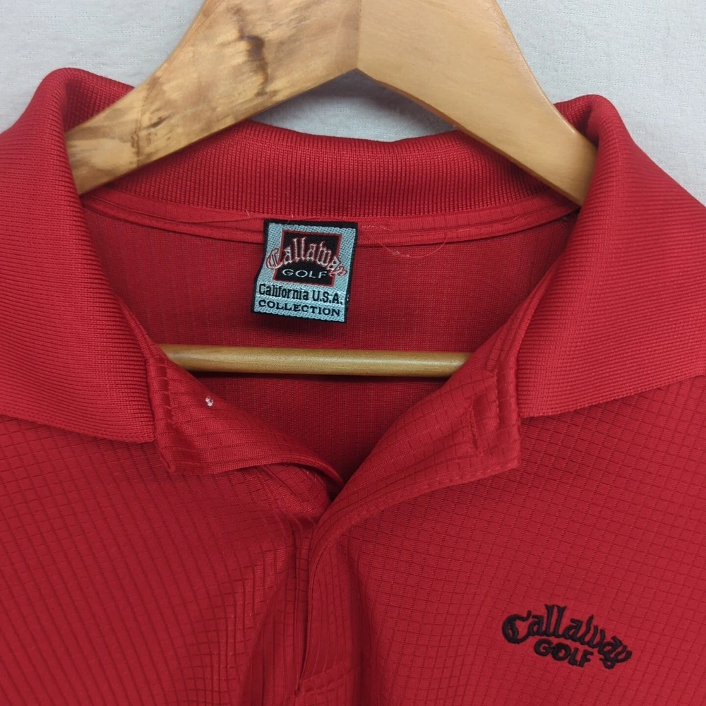 Callaway Golf California USA Collection Polo Shirt Short Sleeve Red Golf Mens NOTE: There is no size tag present with this garment. Please refer to below measurements for sizing information. Tag has is coming away from the garment. Armpit to armpit: 56cm approx. Top to Bottom: 75cm approx. Disclaimer:product colour may slightly vary due to photographic lighting sources or your monitor settings Item Features Quality Assurance : This is a pre-owned item that has been cleaned in accordance with the manufacturer's care guidelines. Condition : Overall in great used condition with only light signs of regular wear. Measurements : Please refer to the photos for detailed sizing information to ensure the perfect fit. Payment & Shipping Quick Dispatch : All orders ship within 2 business days of cleared payment. Combined Postage : Pay just $2 extra for each additional item added to your order. Hassle-Free Returns : We offer a 30-day free return policy. Buy with confidence. Bundle & Save! Buy 2 items - Save 15% Buy 3 items - Get 20% off Buy 4 or more - Score 25% off your total Please browse our store to discover more great deals on Polo Shirts and more!
