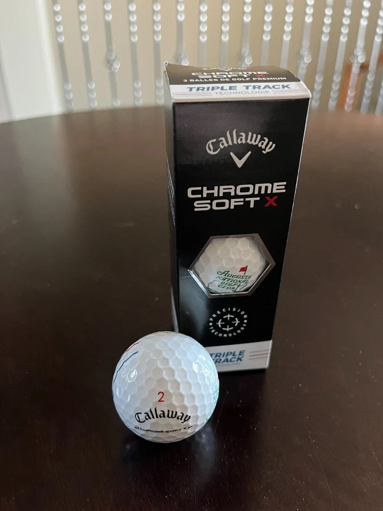 Sleeve of 3 Callaway Chrome Soft golf balls from the legendary Augusta National Golf Club. Features the ultra exclusive Augusta National Golf Club logo - not the Master's Tournament logo. Available ONLY in the Member's pro shop. 3 sleeves available. Brand new in box and ships free. The perfect gift for golfer! I have numbers 1, 2, and 4. All 3 balls in a sleeve will feature the same number. If you have a preferred number, please send me a message and I'll do my best to honor your request.