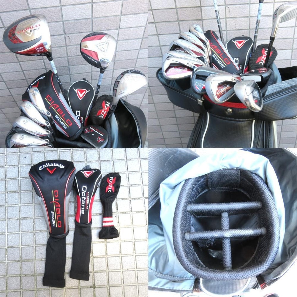 Callaway Diablo Golf Club Set 12 pcs 1W Driver FW UT Iron Putter Right-Hand Key Features This is a complete Callaway golf club set, including a driver, fairway woods, hybrids, 8 irons, a putter, and a 5-compartment carry bag. The clubs are right-handed and suitable for beginners or those looking to upgrade. The set features Callaway Diablo Edge and Diablo Octane models with original carbon shafts, with some clubs showing minor scratches and wear. The putter is an Odyssey White Rize, 34 inches long. The carry bag has some signs of use, such as scratches and stains, and the zipper pull is non-original. All items are used and sold as-is. Perfect for starting or resuming golf. Item Specifics: - Brand: Callaway - Model: Diablo Edge, Diablo Octane, RAZR, RAZR X Black, Odyssey White Rize - Club Type: Driver, Fairway Wood, Utility, Iron, Putter - Shaft Material: Carbon - Number of Clubs: 12 - Specifications Brand Callaway Golf Country Japan Product Description Item Title Golf Set Callaway Diablo 1W Fwut Iron Pt 12 Pieces Payment Supports managed payments Please pay within 5 days after auction is finished. About Us We are located in Japan. It's our pleasure to make you happy by proposing our recommend item. If you have any questions or request about items, please feel free to ask us. International Buyers - Please Note: -Import duties, taxes, and charges are not included in the item price or shipping charges. These charges are the buyer's responsibility. -Please check with your country's customs office to determine what these additional costs will be prior to bidding/buying. -These charges are normally collected by the delivering freight (shipping) company or when you pick the item up - do not confuse them for additional shipping charges. -We do not mark merchandise values below value or mark items as - gifts - The US and International government regulations prohibit such behavior. Thank you for your understanding.
