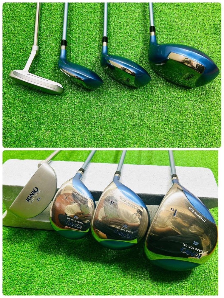 Callaway Ignio Women's 8-Piece Golf Set Lightweight Beginner Easy Right Key Features This is a cute Callaway IGNIO ladies' golf club half set, ideal for beginners. It includes 8 clubs: driver, fairway woods (4W 19°, 7W 24°), irons (7, 9, P.S), and a steel-shafted putter. The clubs feature original shafts with flex L, and the driver has a 14° loft. The set comes with a Callaway carry bag, a name tag, and a cover with minor damage. Used but well-maintained, with minimal signs of wear and no major scratches. Suitable for all skill levels and durable for long-term use. Please review images for details and ask questions if needed. Item Specifics: Brand: Callaway Model: IGNIO EL Type: Golf Club Set Number of Clubs: 8 Material: Steel (Putter shaft) Color: Not specified Condition: Used, minimal signs of wear Specifications Brand Callaway Golf Country Japan Product Description Item Title Callaway Ignio 8-Piece Women'S Golf Set Beginners Easy Right Payment Supports managed payments Please pay within 5 days after auction is finished. About Us We are located in Japan. It's our pleasure to make you happy by proposing our recommend item. If you have any questions or request about items, please feel free to ask us. International Buyers - Please Note: -Import duties, taxes, and charges are not included in the item price or shipping charges. These charges are the buyer's responsibility. -Please check with your country's customs office to determine what these additional costs will be prior to bidding/buying. -These charges are normally collected by the delivering freight (shipping) company or when you pick the item up - do not confuse them for additional shipping charges. -We do not mark merchandise values below value or mark items as - gifts - The US and International government regulations prohibit such behavior. Thank you for your understanding.