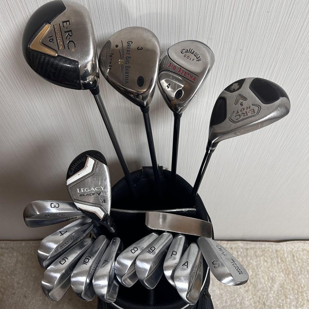 Callaway Men’s 16-Piece Golf Set with Caddy Bag Luxury Irons Woods Used Key Features This is a high-quality men's right-handed golf set featuring 16 clubs from renowned brands including Callaway, Dunlop, Maxfli, and Adidas. The full set includes a driver, fairway woods, hybrids, irons, and a putter, all stored in a durable Adidas cart bag. Clubs show signs of use such as scratches, dirt, and ball marks, but are in playable condition with no need for grip replacement. The cart bag has some wear and rust on metal parts but functions perfectly. Ideal for golfers seeking a complete, ready-to-play set. Item Specifics: Brand: Callaway, Dunlop, Maxfli, Adidas Type: Golf Club Set Handedness: Right Number of Clubs: 16 Model: Various models including ECR FUSION, Great Big Bertha II, Big Bertha, Memphis10 Material: Steel shafts Condition: Used, with signs of wear such as scratches, dirt, and rust; playable condition Specifications Brand Callaway Golf Country Japan Product Description Item Title Men'S Callaway Luxury 16-Piece Golf Set With Caddy Bag Payment Supports managed payments Please pay within 5 days after auction is finished. About Us We are located in Japan. It's our pleasure to make you happy by proposing our recommend item. If you have any questions or request about items, please feel free to ask us. International Buyers - Please Note: -Import duties, taxes, and charges are not included in the item price or shipping charges. These charges are the buyer's responsibility. -Please check with your country's customs office to determine what these additional costs will be prior to bidding/buying. -These charges are normally collected by the delivering freight (shipping) company or when you pick the item up - do not confuse them for additional shipping charges. -We do not mark merchandise values below value or mark items as - gifts - The US and International government regulations prohibit such behavior. Thank you for your understanding.
