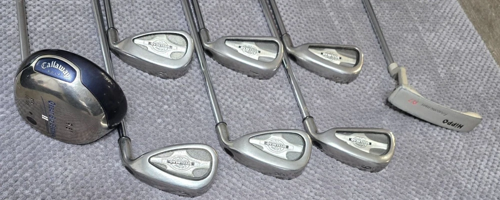 Callaway Men's Golf Set With Callaway Golf Bag Right Handed Set Includes -Callaway Big Bertha II Driver - Regular Flex -Callaway Steelhead Pro Series X-14 Iron Set 5, 6, 7, 8, 9, P - Stiff Flex -Hippo Putter -Callaway Golf Stand Bag With Double Shoulder Straps (SKU03343)