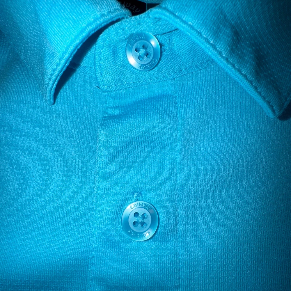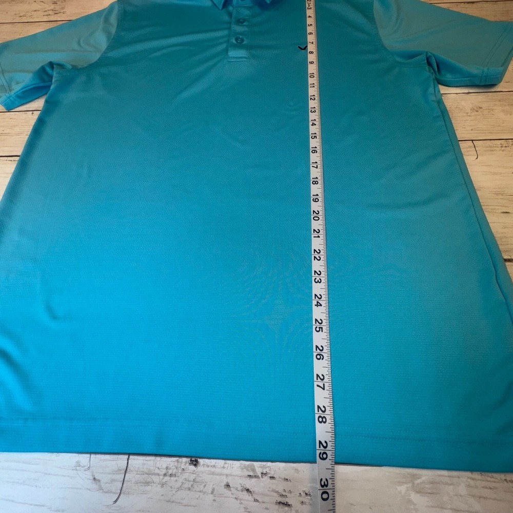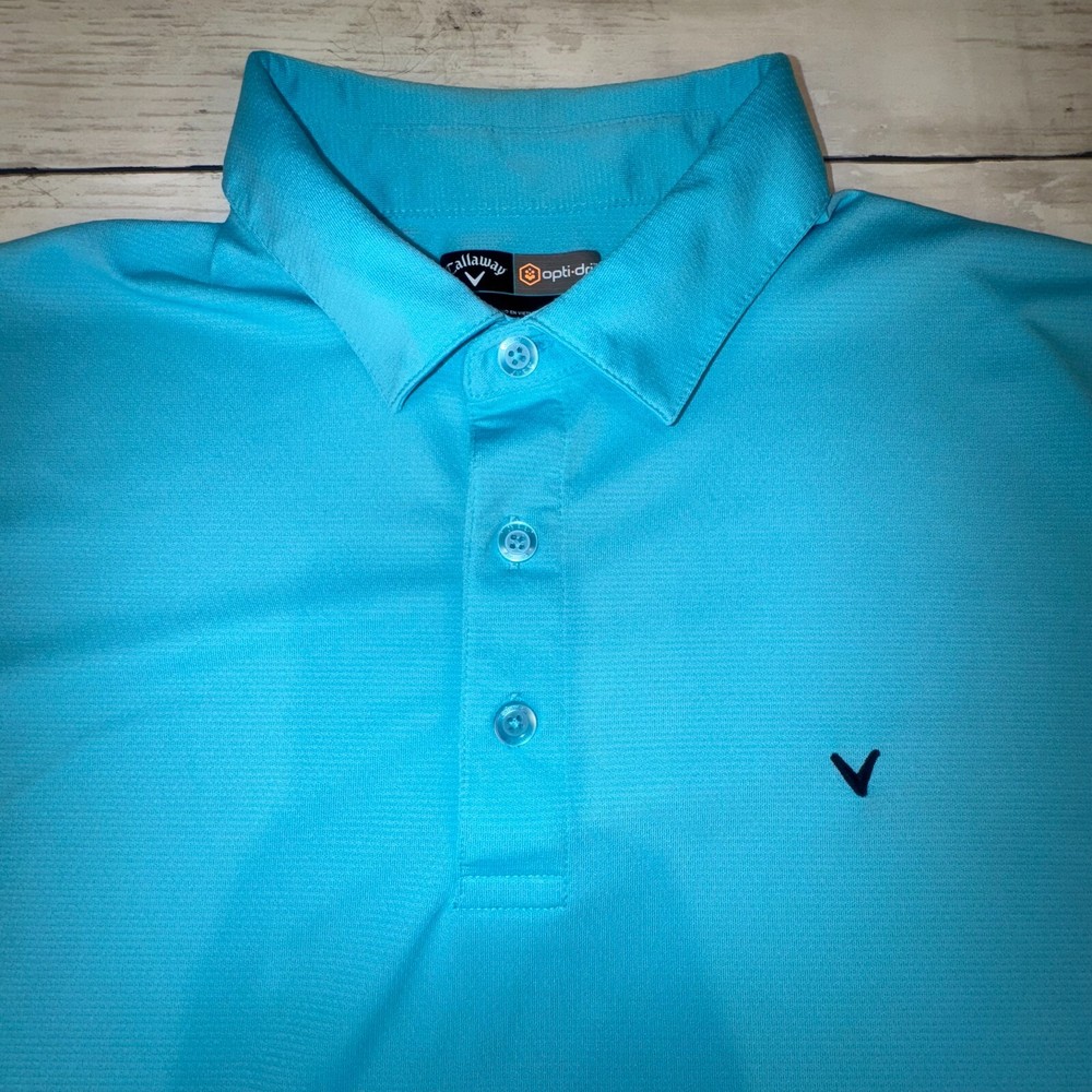 The Callaway Opti Dri Adult Mens L Aqua Blue Short Sleeve Polo Golf Shirt is a stylish and functional piece of clothing designed for outdoor activities, particularly golf. Made from a polyester blend material with a light fabric wash, this polo shirt offers comfort and breathability. The solid blue color and collared neckline add a touch of classic style, while the regular fit ensures a comfortable and flattering silhouette. With features like easy care, stretch, and all-season suitability, this polo shirt is perfect for both casual wear and sporty occasions.