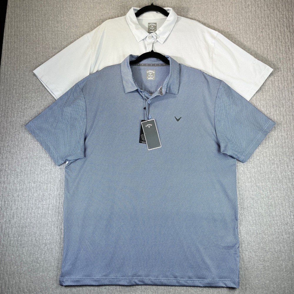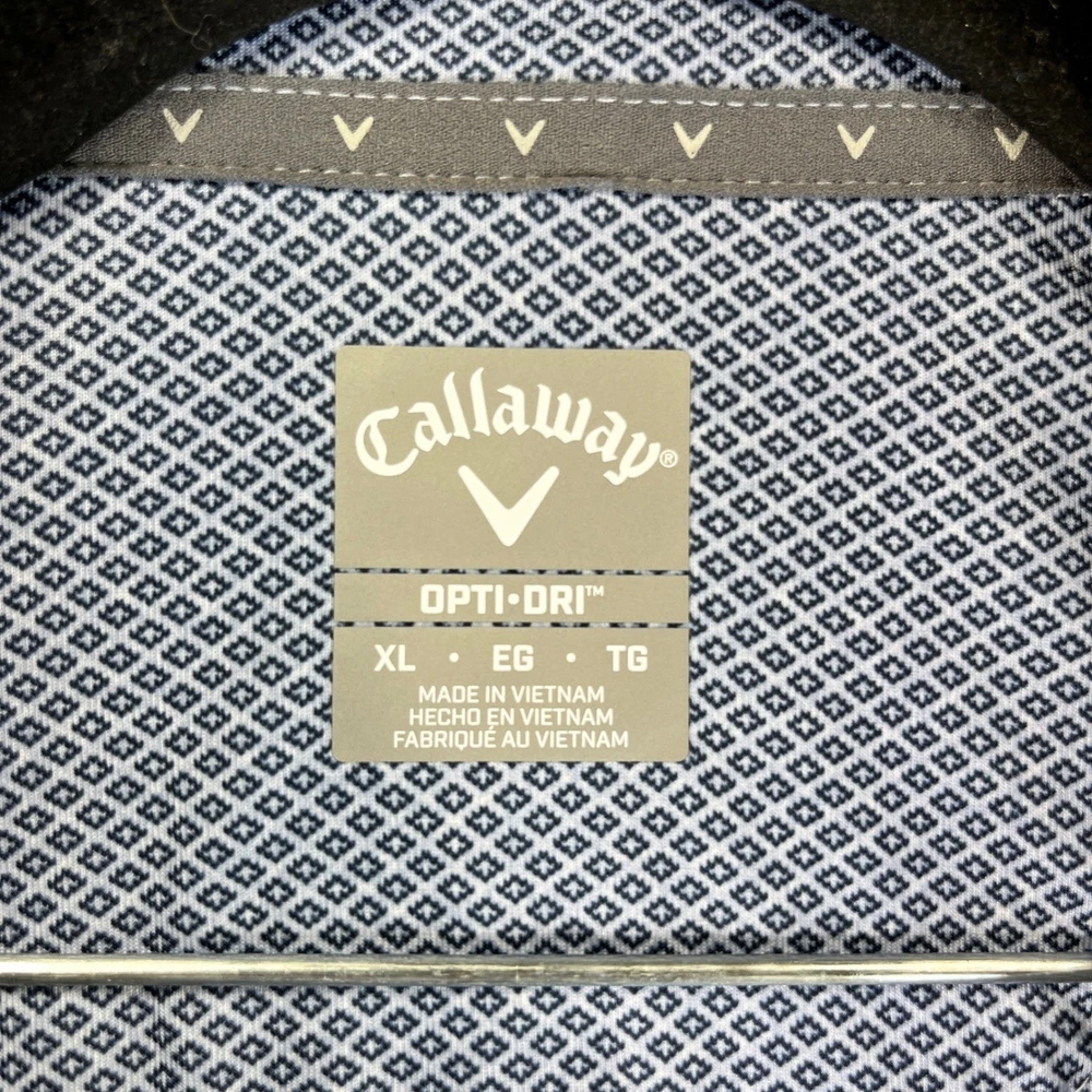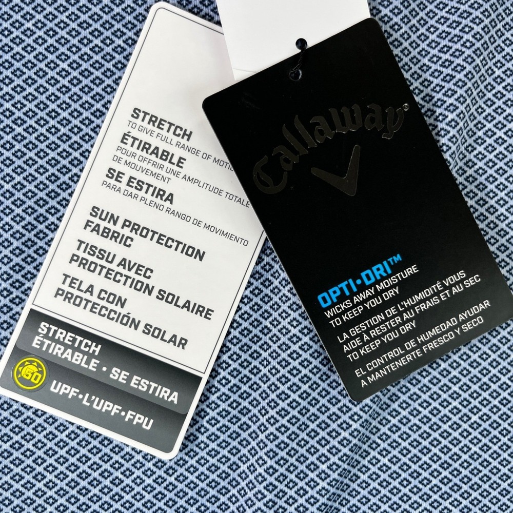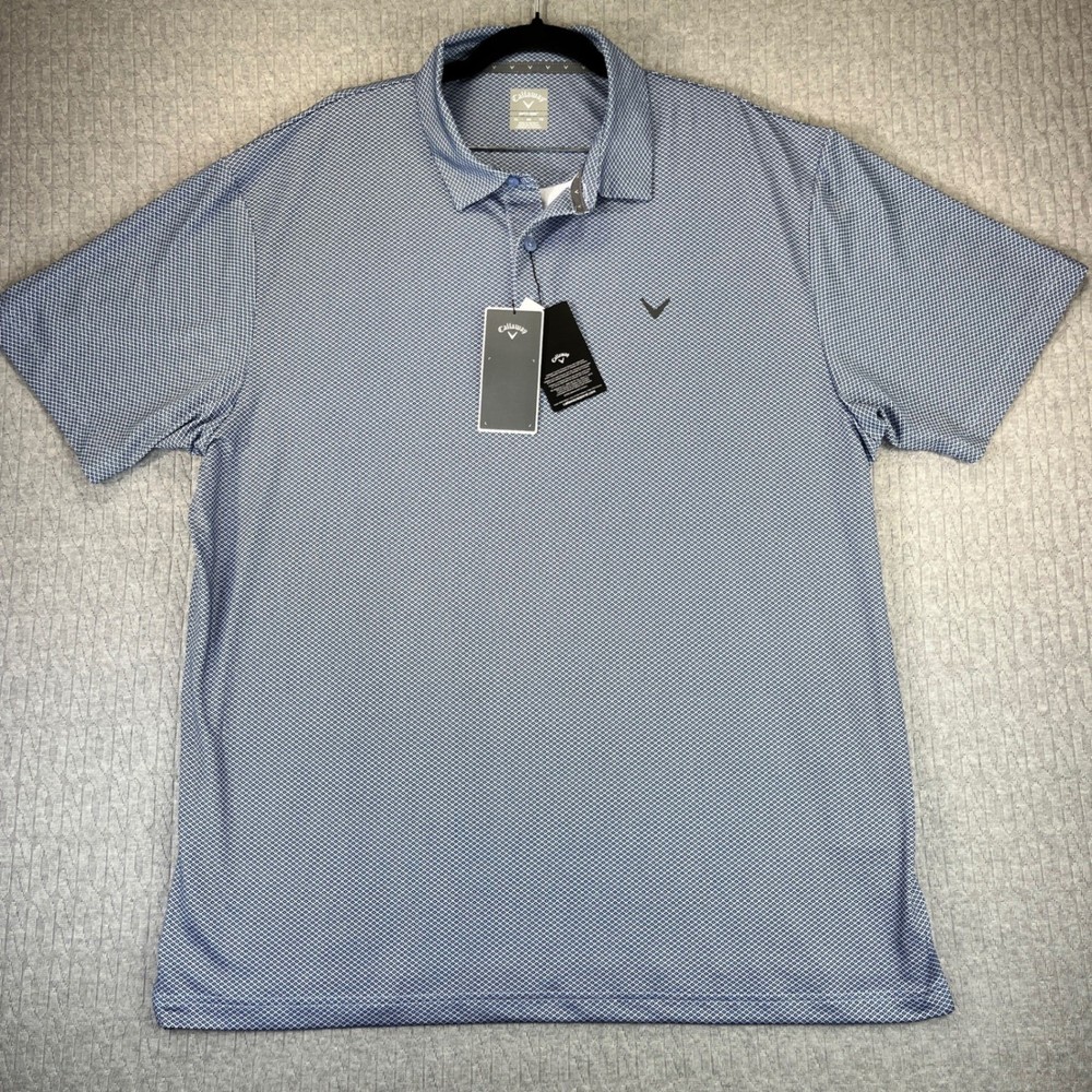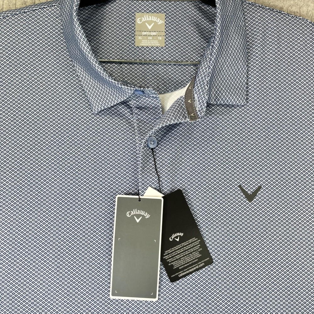 excellent new with tags condition please examine all photos for measurements and exact fit. No hassle returns and all items are shipped out daily Monday through Friday thank Type: Polo Department: Men Performance/Activity: Golf Closure: Button Sleeve Length: Short Sleeve Features: Stretch, Moisture Wicking, UPF 50, Breathable, Quick Dry Neckline: Collared Material: Polyester Blend, 94% Polyester 6% Elastane Fit: Regular Pattern: Geometric Style: Polo Shirt Keywords: Callaway, Opti-Dri, Golf Polo, Polo Shirt, Mens, Stretch, UPF 50, New With Tags, XL, Sportswear, AthleticExcellent new with tags condition please examine all photos for measurements and exact fit. No hassle returns and all items are
