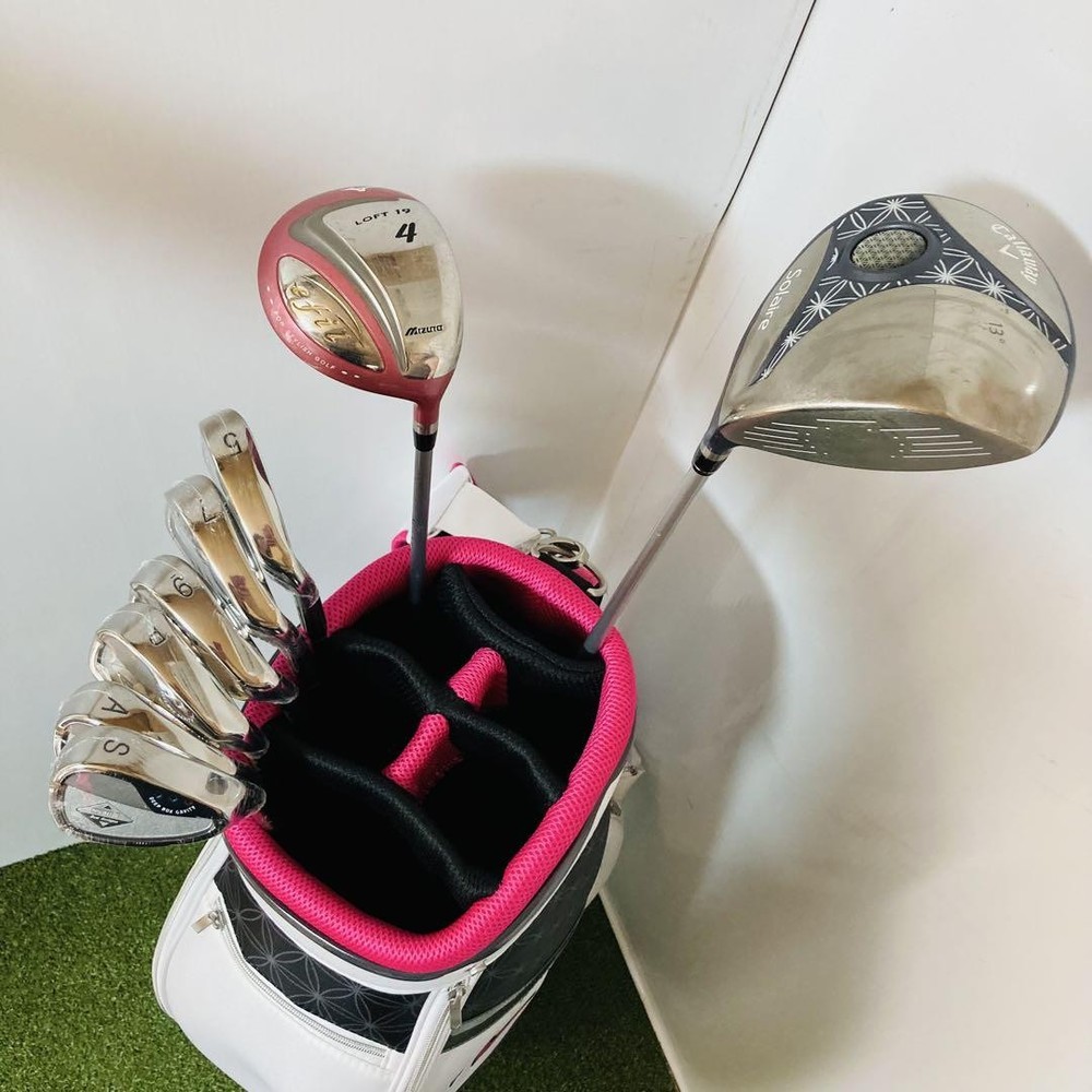 Callaway Solaire Women's Golf Iron Set, Beginner-Friendly, Used Key Features Callaway Solaire Ladies Golf Set - Perfect for Beginners and Intermediate Players This high-quality Callaway Solaire women's golf set is ideal for beginners and those looking to improve their game. The set includes a driver, fairway wood, and irons, all designed for easy handling and stability. The driver is a current model with a carbon shaft (flex L), featuring a slight dent that does not affect performance. The Mizuno eFil 4W has a 19° loft with a carbon shaft (flex L). The irons (5, 7, 9, P, S) are made by Deep Box Cavity with lightweight carbon shafts (flex L). The stylish Callaway Soleil carry bag shows minor signs of use but remains functional. All clubs have been cleaned and disinfected for your safety. This set offers excellent distance and balance, making it suitable for beginners and versatile enough for intermediate players. Item Specifics: - Brand: Callaway - Model: Solaire Specifications Brand Callaway Golf Country Japan Product Description Item Title Callaway Solaire Iron Women'S Golf Set Payment Supports managed payments Please pay within 5 days after auction is finished. About Us We are located in Japan. It's our pleasure to make you happy by proposing our recommend item. If you have any questions or request about items, please feel free to ask us. International Buyers - Please Note: -Import duties, taxes, and charges are not included in the item price or shipping charges. These charges are the buyer's responsibility. -Please check with your country's customs office to determine what these additional costs will be prior to bidding/buying. -These charges are normally collected by the delivering freight (shipping) company or when you pick the item up - do not confuse them for additional shipping charges. -We do not mark merchandise values below value or mark items as - gifts - The US and International government regulations prohibit such behavior. Thank you for your understanding.