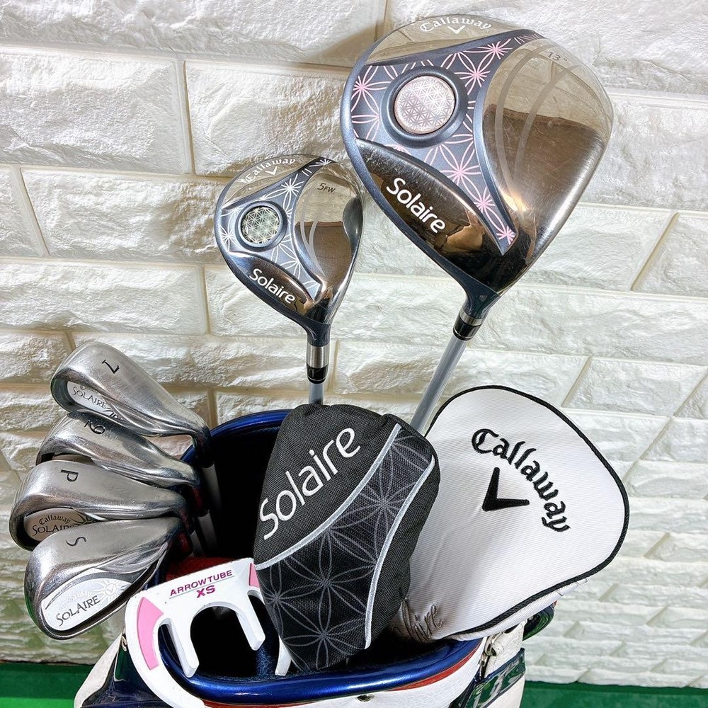 Callaway Soleil Women’s Golf Club Set 7 clubs used beginner friendly Key Features Callaway SOLAIRE Women's Golf Club Set - 7 Clubs This is a used beginner-friendly golf club set perfect for women starting out. It includes a driver, fairway wood, irons, wedges, putter, headcovers, and a cart bag. The clubs feature original shafts with flex L, suitable for beginners. The set shows signs of use such as minor scratches and scuffs but remains in good playable condition. The cart bag has some wear and stains. Ideal for new players ready to hit the course. Item Specifics: - Brand: Callaway - Model: SOLAIRE - Gender: Women's - Number of Clubs: 8 - Set Includes: Driver, Fairway Wood, Irons, Wedges, Putter, Headcovers, Cart Bag Specifications Brand Callaway Golf Country Japan Product Description Item Title Women'S Golf Set Callaway Soleil Payment Supports managed payments Please pay within 5 days after auction is finished. About Us We are located in Japan. It's our pleasure to make you happy by proposing our recommend item. If you have any questions or request about items, please feel free to ask us. International Buyers - Please Note: -Import duties, taxes, and charges are not included in the item price or shipping charges. These charges are the buyer's responsibility. -Please check with your country's customs office to determine what these additional costs will be prior to bidding/buying. -These charges are normally collected by the delivering freight (shipping) company or when you pick the item up - do not confuse them for additional shipping charges. -We do not mark merchandise values below value or mark items as - gifts - The US and International government regulations prohibit such behavior. Thank you for your understanding.