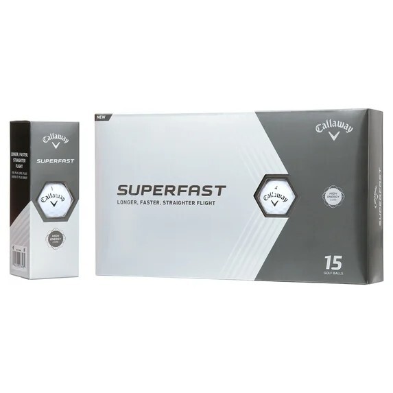 About this item Callaway Golf Superfast 2022 Golf Balls, White, 15 Pack Enhanced ball speed with Total Performance Hybrid Cover features an innovative PARALOID™ Impact Modifier produced by DOW Maximizes distance from high launch and low spin while promoting soft feel and durability Exceptional distance and speed through the bag with High Speed Core Consistently long with optimized trajectory HEX Aerodynamics reduces drag and enhances lift for increased carry and higher flight Product details Callaway Superfast 2022 Golf Balls, White, 15 Pack Callaway Golf Superfast 2022 Golf Balls, White, 15 Pack Enhanced ball speed with Total Performance Hybrid Cover features an innovative PARALOID™ Impact Modifier produced by DOW Maximizes distance from high launch and low spin while promoting soft feel and durability Exceptional distance and speed through the bag with High Speed Core Consistently long with optimized trajectory HEX Aerodynamics reduces drag and enhances lift for increased carry and higher flight Specifications Features No features description available Brand Callaway Manufacturer Part Number 643095915 Assembled Product Dimensions (L x W x H) 5.50 x 7.60 x 1.70 Inches