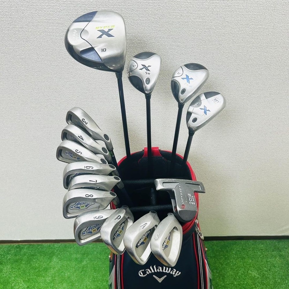 Callaway X Series Golf Club Set Men’s R Right Beginner Interchangeable Clubs Key Features This is a Callaway beginner golf set, perfect for new players or those aiming to break 100. It includes a driver (Hyper X 1W, 10° loft), fairway woods (5W, 7W, 19° and 21° lofts), a 3H utility club (21° loft), and a set of Big Bertha irons (3i to 9i). The set also features an Odyssey 2-ball Blade putter and a Callaway cart bag. All clubs have genuine carbon shafts (woods and irons) and steel shafts (putter). The clubs show minor signs of use but are in good condition with no major damage, ready for play. Suitable for right-handed men, ideal for beginners or players seeking reliable equipment for course debut. Item Specifics: Brand: Callaway Model: Hyper X (Driver), X (Fairway Woods), Big Bertha (Irons), Odyssey (Putter) Type: Golf Club Set Specifications Brand Callaway Golf Country Japan Product Description Item Title Beginners Recommended Callaway X Series Men'S Golf Set R Right Club Payment Supports managed payments Please pay within 5 days after auction is finished. About Us We are located in Japan. It's our pleasure to make you happy by proposing our recommend item. If you have any questions or request about items, please feel free to ask us. International Buyers - Please Note: -Import duties, taxes, and charges are not included in the item price or shipping charges. These charges are the buyer's responsibility. -Please check with your country's customs office to determine what these additional costs will be prior to bidding/buying. -These charges are normally collected by the delivering freight (shipping) company or when you pick the item up - do not confuse them for additional shipping charges. -We do not mark merchandise values below value or mark items as - gifts - The US and International government regulations prohibit such behavior. Thank you for your understanding.