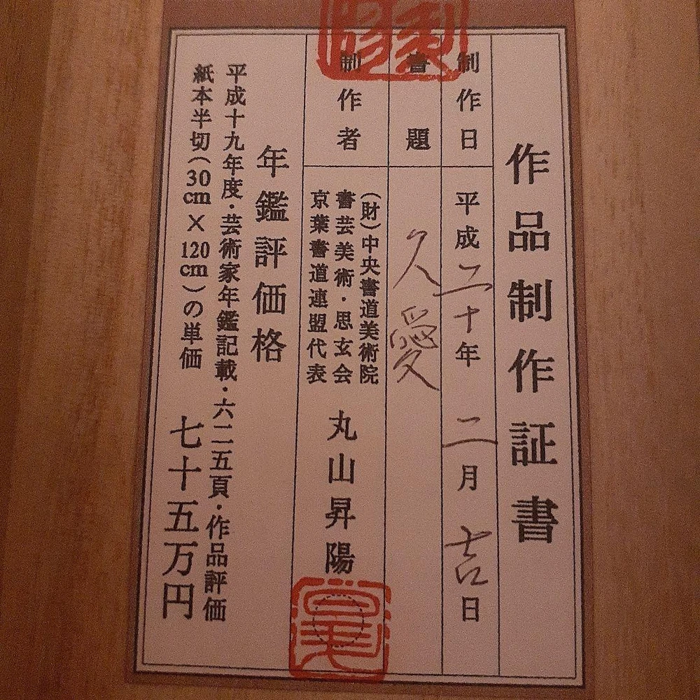 Item Title Calligraphy Hanging Scroll Work Rating 750,000 Yen, In A Paulownia Box Payment Supports managed payments Please pay within 5 days after auction is finished. About Us We are located in Japan. It's our pleasure to make you happy by proposing our recommend item. If you have any questions or request about items, please feel free to ask us. International Buyers - Please Note: -Import duties, taxes, and charges are not included in the item price or shipping charges. These charges are the buyer's responsibility. -Please check with your country's customs office to determine what these additional costs will be prior to bidding/buying. -These charges are normally collected by the delivering freight (shipping) company or when you pick the item up - do not confuse them for additional shipping charges. -We do not mark merchandise values below value or mark items as - gifts - The US and International government regulations prohibit such behavior. Thank you for your understanding.