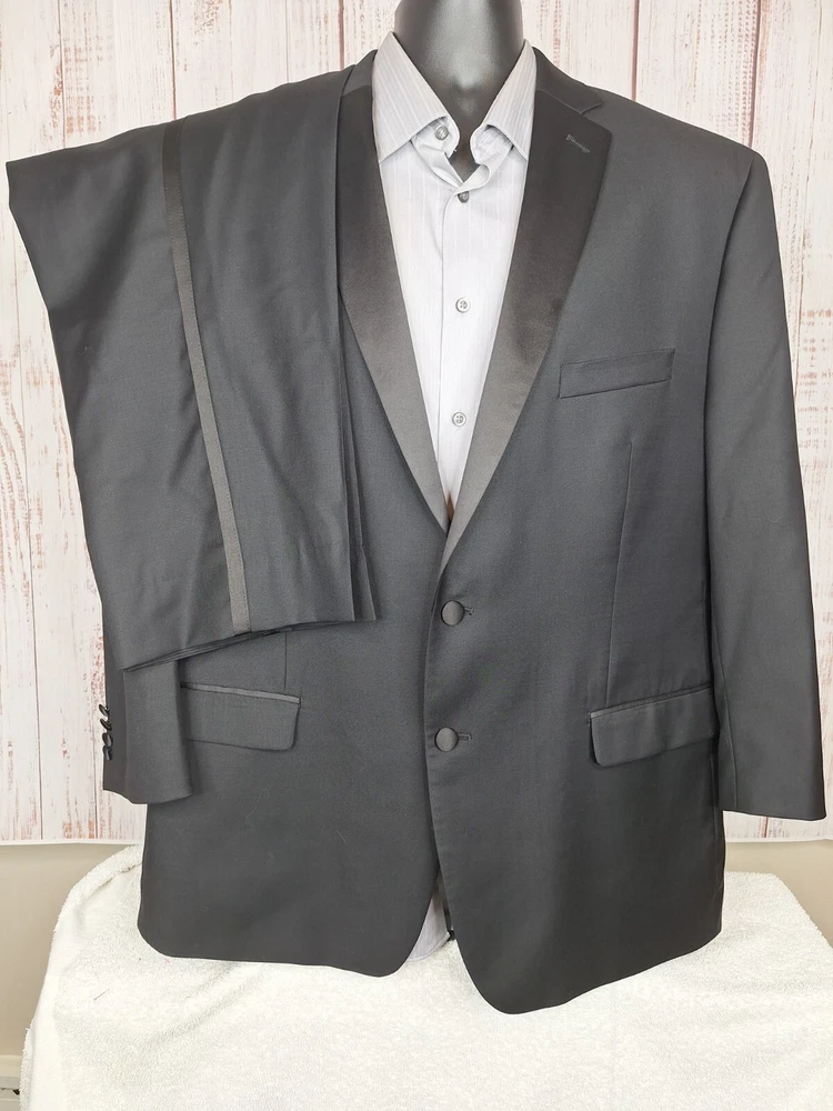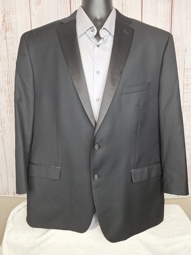 Calvin Klein 2 Piece Tuxedo Mens 48S 42X28 Black Wool 2 Button Double Vented Tailored to a 48S from a 48R can be brought back. Please check out the measurements before buying to ensure a perfect fit Shirt Size on Label 48R(48S) Shoulder- Hem 32.00'' Shoulder- Shoulder 21.00'' Shoulder- Wrist 23.50'' Armpit- Armpit 25.00'' 24.00'' Everything ships within a day. Feel free to message me with any questions. Thank you very much. 8/9/24 Pants Flat Front Quality used condition. Please check out the measurements before buying to ensure a perfect fit Pants Size on Label 43R Seam (Outer) 38.00'' Waist 42.00'' Waist- Crotch 11.00'' Inseam 28.00'' Extra inseam fabric 3.30'' Everything ships within a day. Feel free to message me with any questions. Thank you very much. 8/9/24