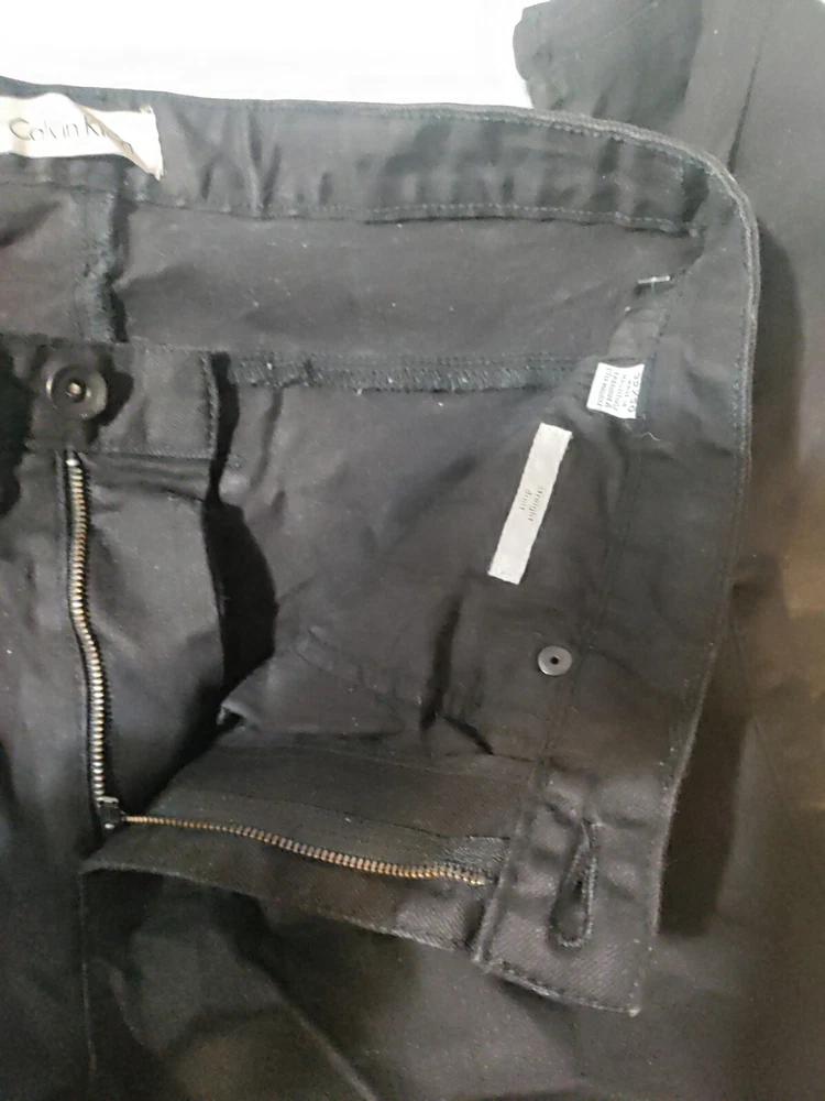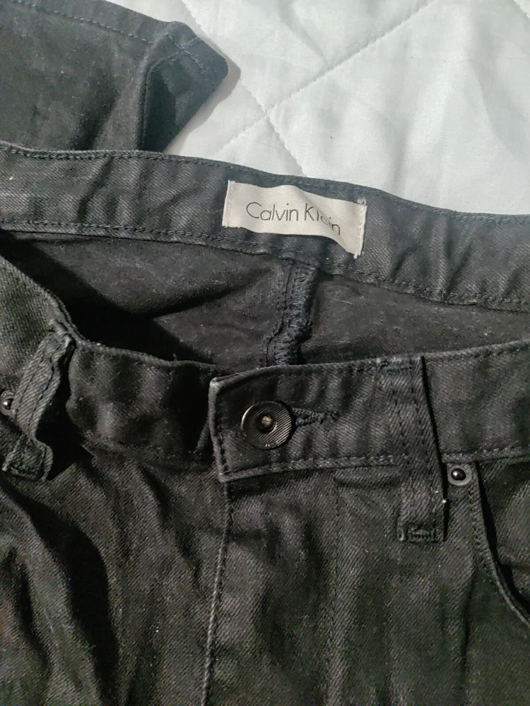 Elevate your wardrobe with these stylish Calvin Klein black jeans in a straight fit. The denim is made with 100% cotton and features a dark wash for a versatile look. These jeans have a 32-inch waist and 30-inch inseam, making them perfect for any occasion. The solid black color of these jeans makes them easy to pair with any shirt or shoes. The zip and button closure ensures a secure fit, while the machine washable fabric makes them easy to care for. These jeans are perfect for any season, whether you're dressing up for a night out or keeping it casual for a day at the office. Add these Calvin Klein black jeans to your collection today!