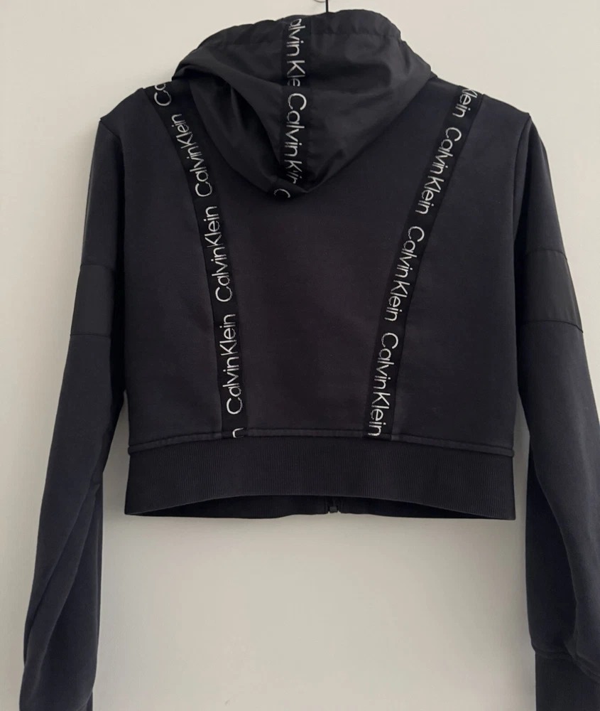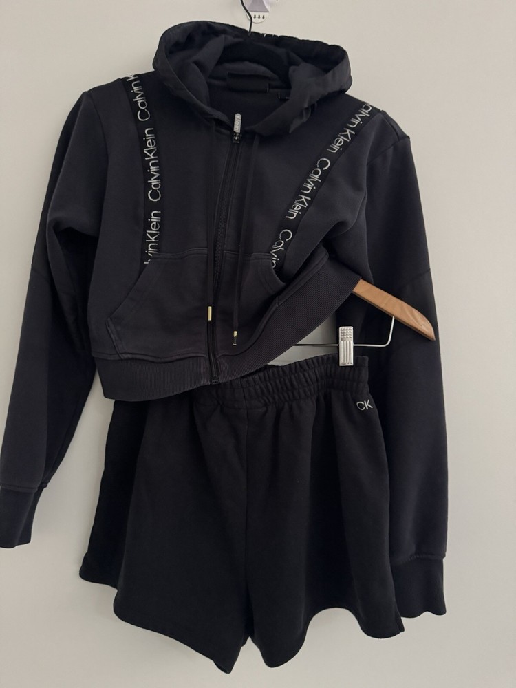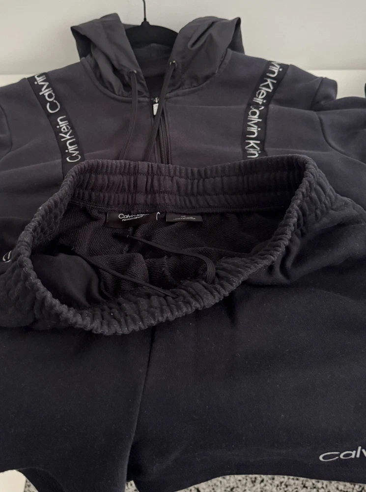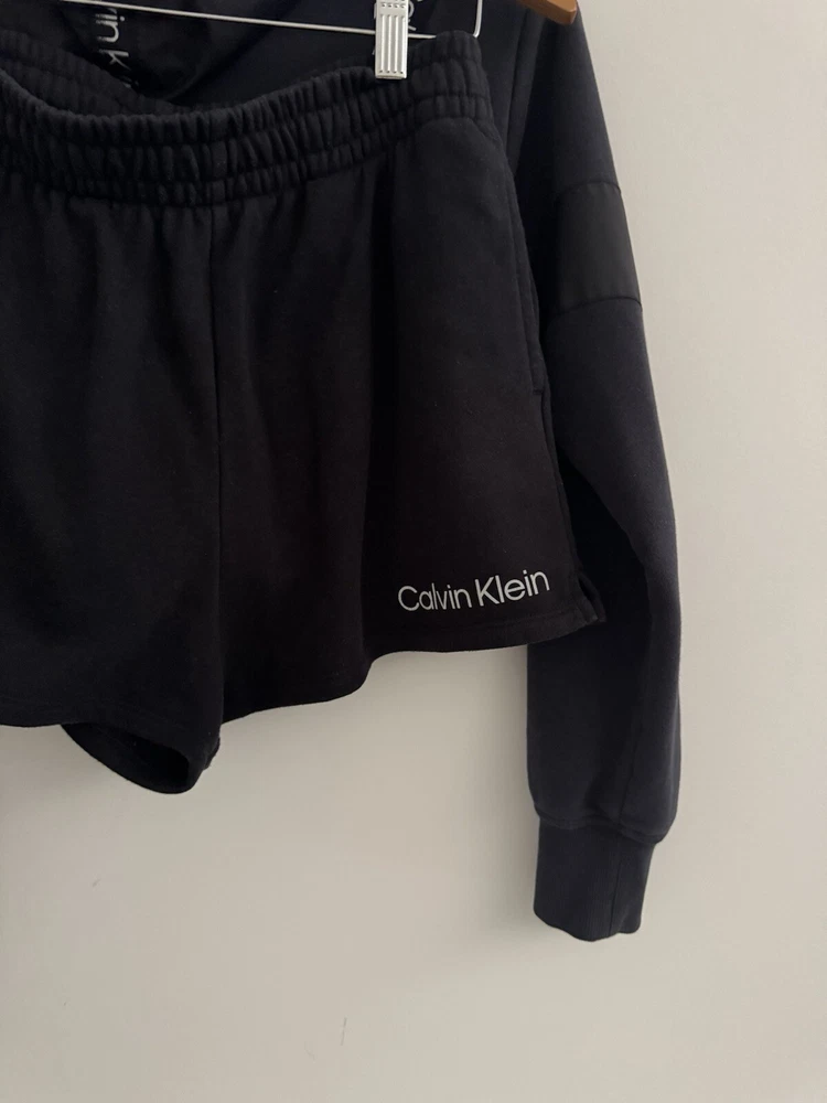 Calvin klein performance woman Calvin Klein Jeans Logo Piping Full Zip Sweatshirt and Matching Short in Black Size Small Woman cotton crop top hoodie & Short Set * side pocket black * Zip * Cotton This beautiful cotton set, purchased in Melbourne, Australia 🇦🇺 Condition: Used, in good condition The hoodie has been washed a few times, which has caused a slight colour difference between the top and shorts.