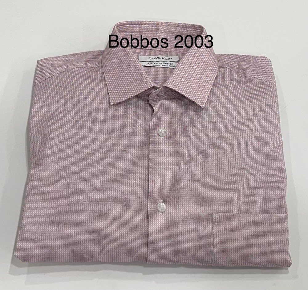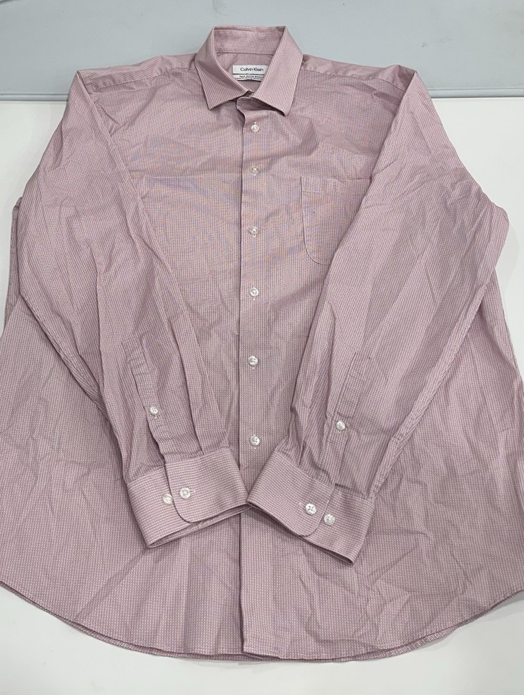 Calvin Klein Men’s Tech Active Stretch Dress Shirt Size: Large (16-16.5-34/35) Color: Red Content: 64% Cotton / 33% Polyamide / 3% Elastane