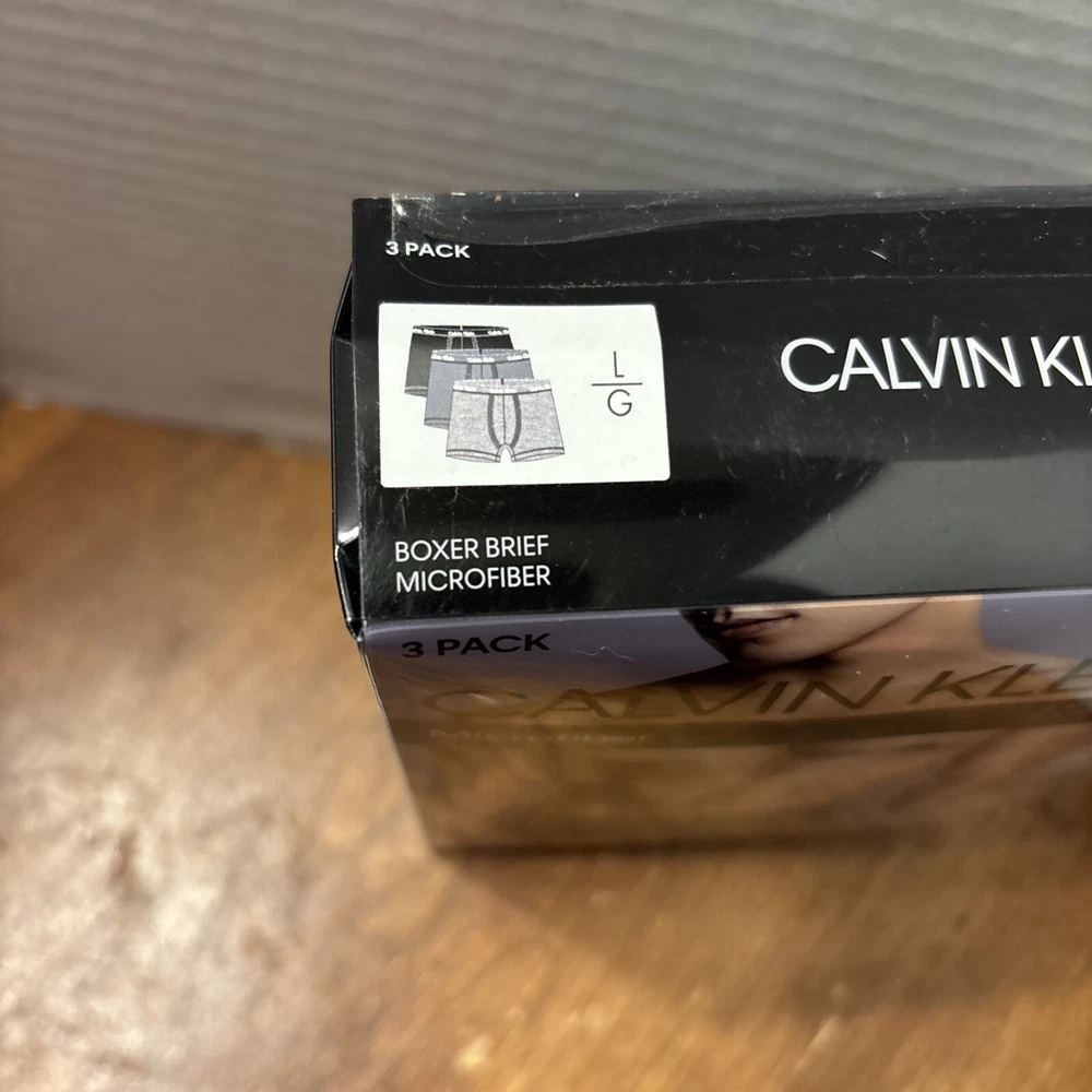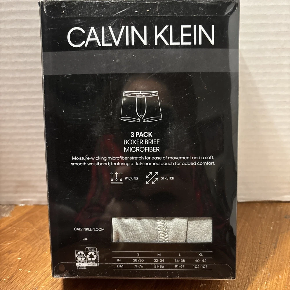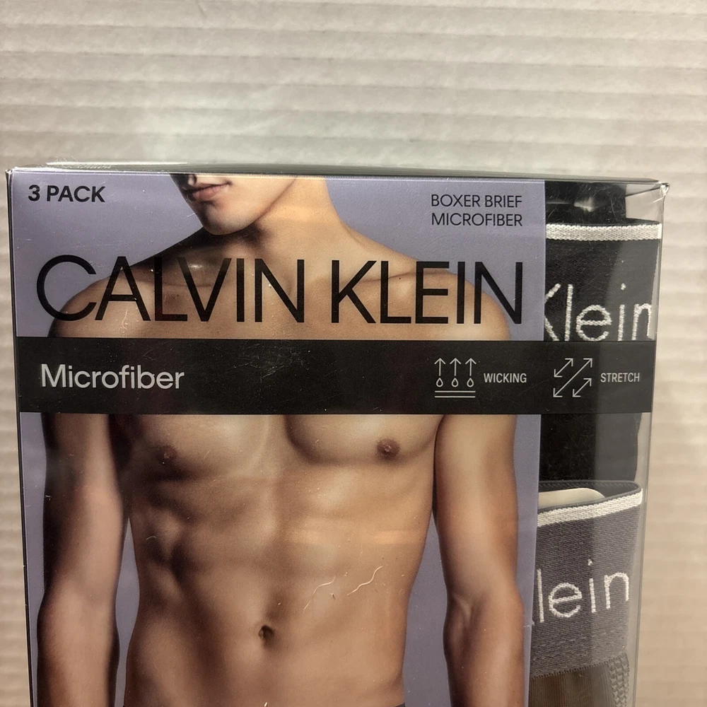 Calvin Klein Microfiber Boxer Briefs in size Large offer a 3-pack of modern underwear for men. Made of 90% Polyester and 10% Elastane microfiber fabric, these boxer briefs feature a pouch design and provide stretch for comfort. They are machine washable and designed for wicking moisture away. The retail is priced at $42.50. International charges are the buyer’s responsibility. No international returns.