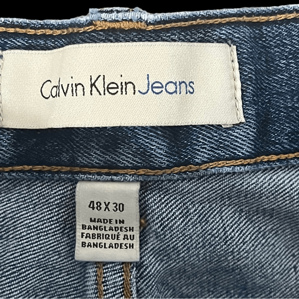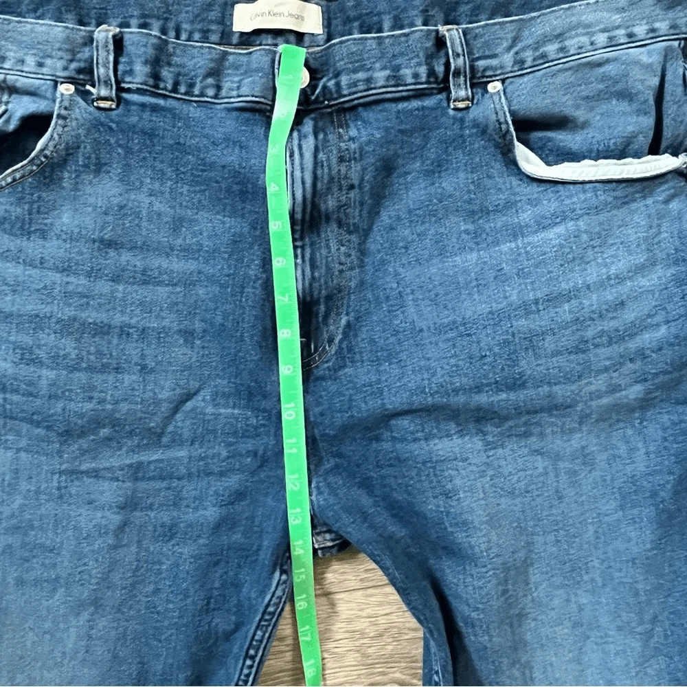 Calvin Klein Relaxed Straight Leg Jeans Color : Blue Label Size 48x30 Approximate Measurements See Photos Waist: 24” inches x 2= 48” inches Inseam: 29” inches Rise: 14” inches