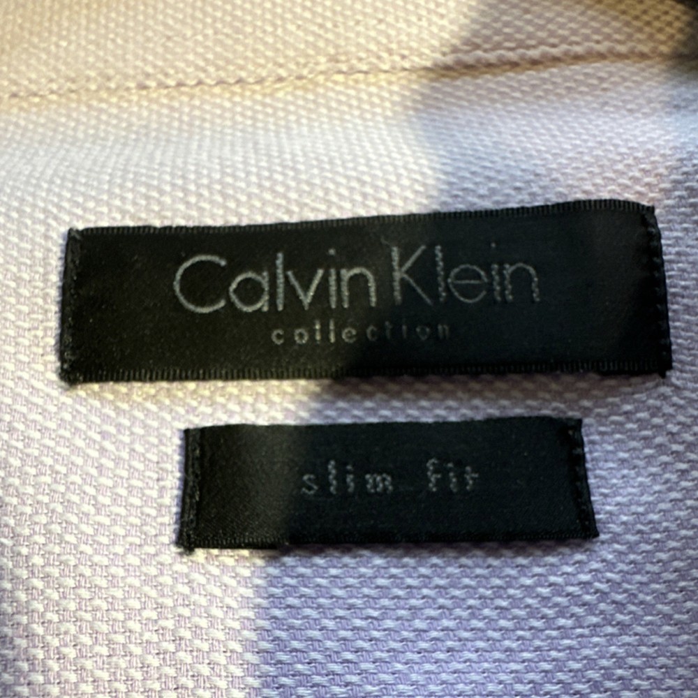 The Calvin Klein Slim Fit Light Purple 100% Cotton Men's Dress Shirt in size 44/17.5 is a sophisticated and stylish option for formal and business occasions. Made from high-quality woven cotton fabric, this shirt features a solid light purple color with a collared neckline and button closure. The slim fit and spread collar style add a modern touch, while the barrel cuff top cuff style and long sleeves provide a classic and polished look. Perfect for those who appreciate designer clothing and are looking for a versatile and high-quality dress shirt for their wardrobe.