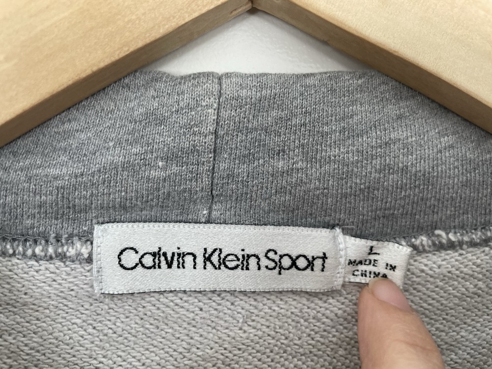 Calvin Klein Sport Women's Solid Gray Embroidered Logo Pullover Sweatshirt Gray L. Condition is pre-owned. Smoke free, pet free home. Shipped via USPS Ground Advantage. In fair condition. There is a small rip in the fabric on the front and the drawstring is missing. Free of stains.