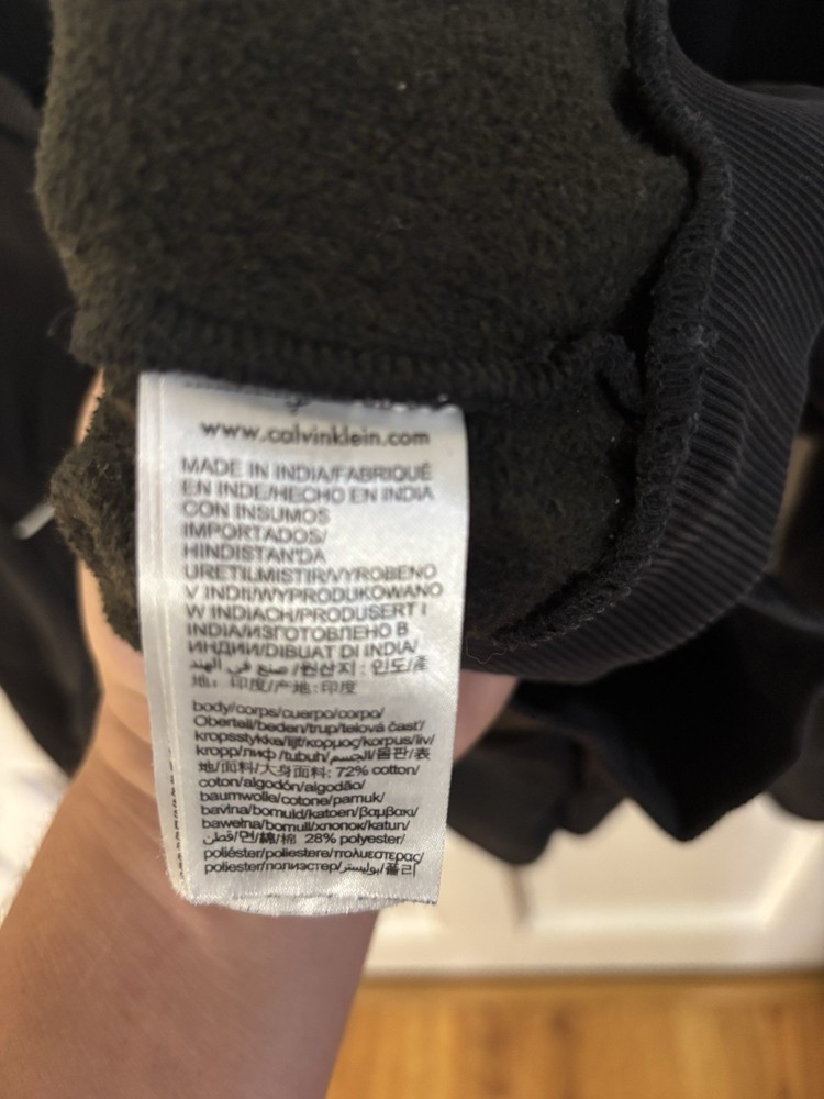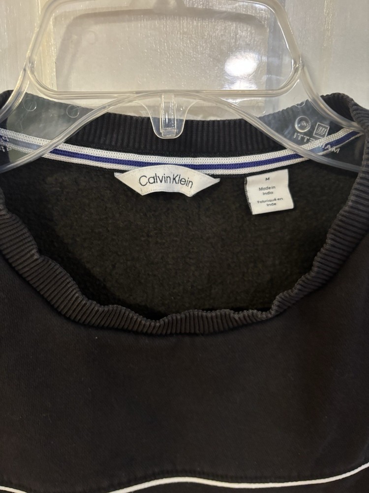 The Calvin Klein Sweatshirt for women in size M is a stylish and comfortable pullover made from soft touch fleece fabric. It features a classic black color with a logo accent, adding a touch of sophistication to the activewear wardrobe. The striped pattern adds a trendy element to the sweatshirt, making it versatile for both casual and athletic occasions. With the trusted Calvin Klein brand name, this sweatshirt is a must-have for fashion-forward women looking for quality and style.