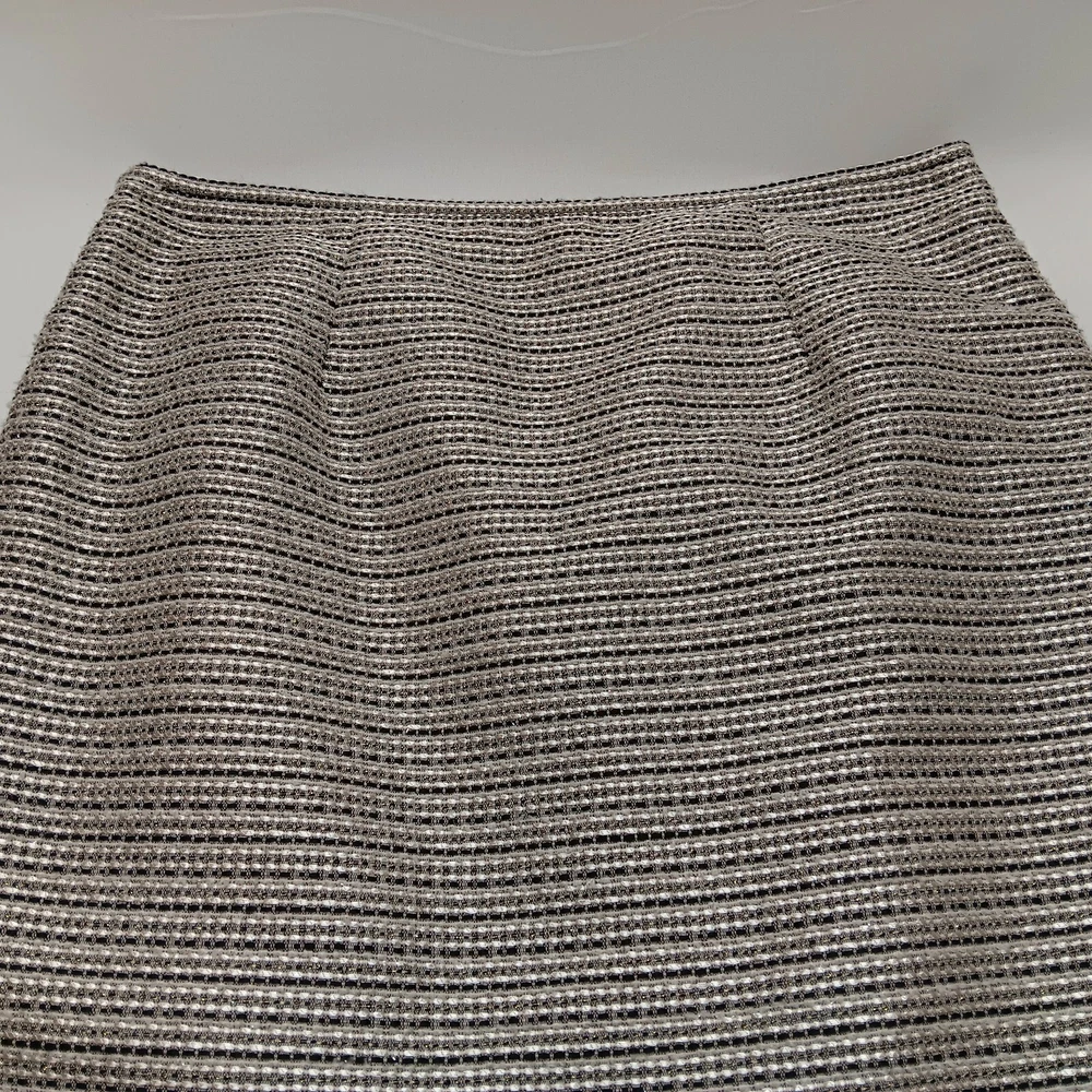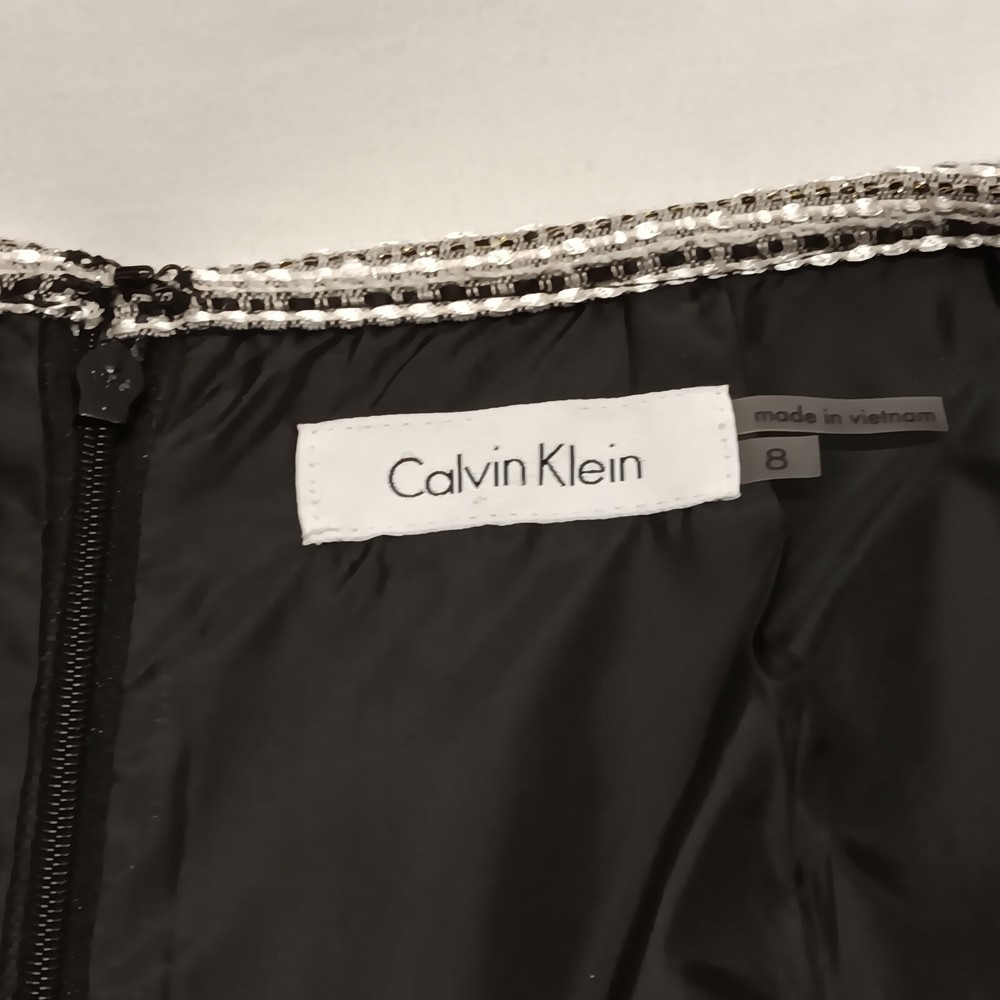 Calvin Klein Tweed Pencil Skirt Women' Size 8 Silver Black Metallic Knee Length This ladies skirt is in excellent pre-owned condition with no holes or stains and very minimal signs of wear. Please see all photos as this is the exact garment you will receive. Measurements taken with item laying flat m- waist is 15.5", length from high point of waist to bottom hem is 23". Fully lined, dry clean only. Thanks for looking!