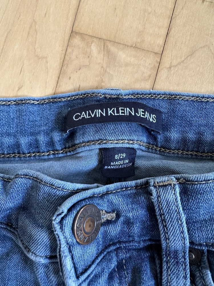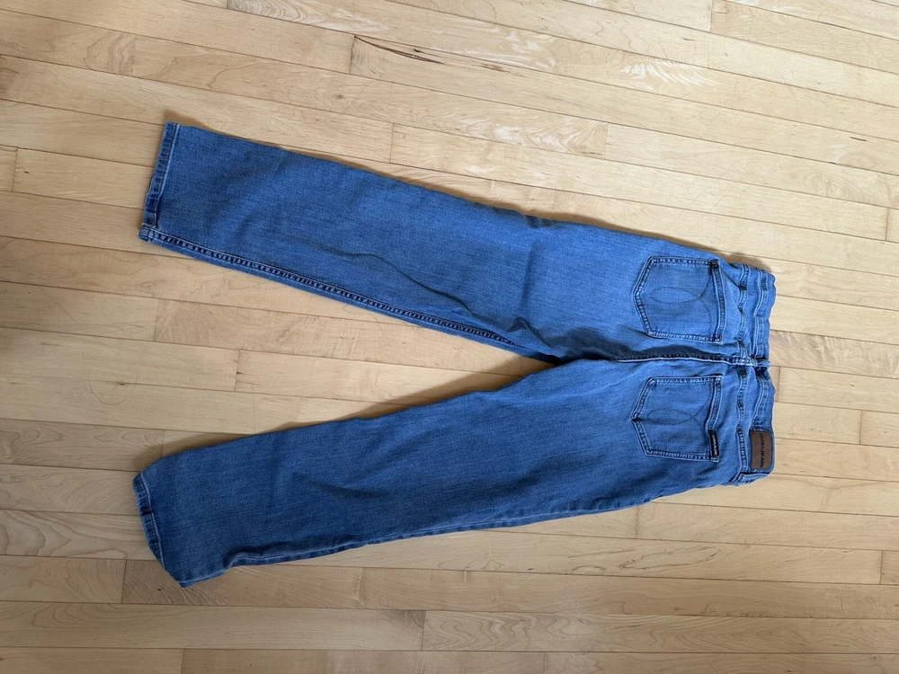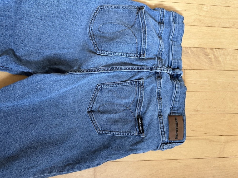 This Calvin Klein Women's Boot Cut Stretch Denim Jeans in size 29/8 feature a classic 5-pocket design with a zip and button closure. Made from a cotton blend fabric with 2% Lyrca ® Elastane, these medium wash blue jeans have a regular fit and a 30-inch inseam. The jeans are part of the Calvin Klein product line and include a brand patch accent on the back pocket. Ideal for various seasons, these versatile jeans are suitable for both winter and summer and have a preppy, city-inspired theme. 124