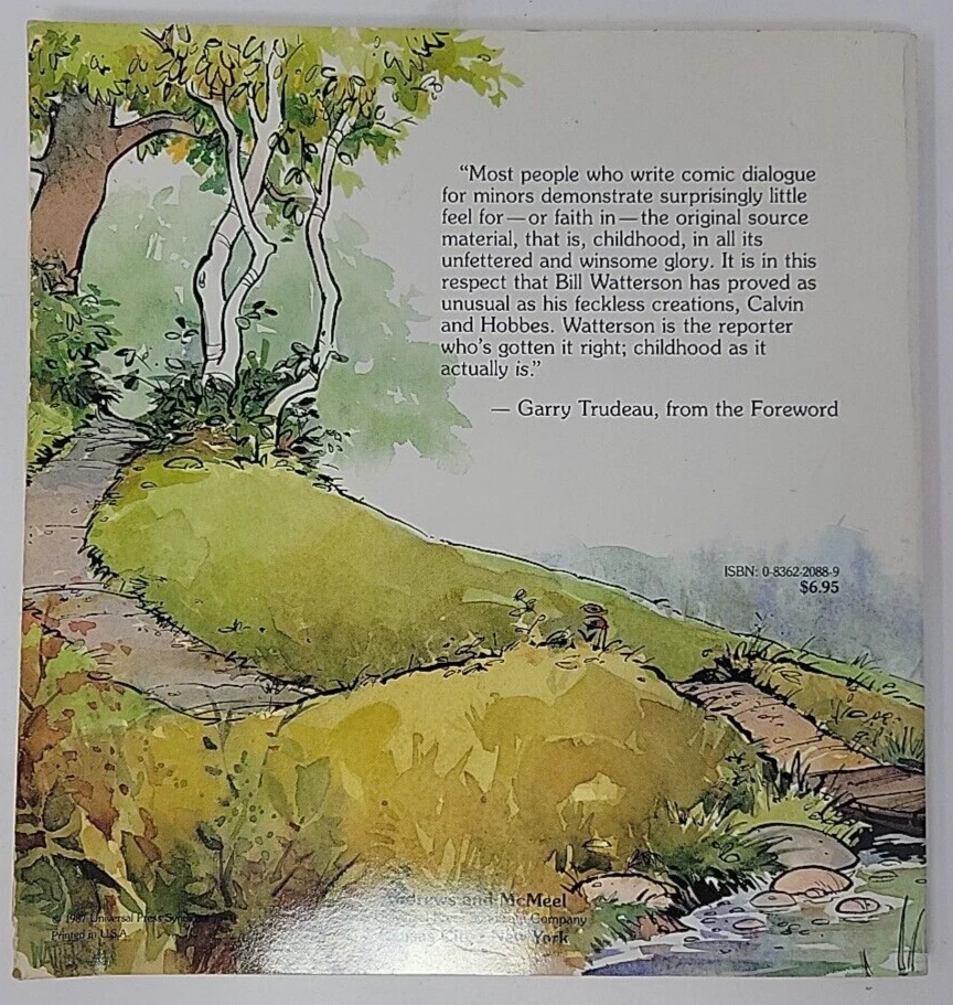 This lot of three vintage Calvin and Hobbes comic book collections is a must-have for any fan of the beloved strip. The tenth anniversary book, The Indespensible Calvin & Hobbes, is included in this bundle, along with two other classic collections. All of the books are in trade paperback format and written in English by author and illustrator Bill Watterson. The comics and humor genre is perfectly embodied in this collection, making it a great addition to any book collection. The books were published by Andrews McMeel Publishing in 1995 and are not personalized or inscribed. The narrative type is fiction, and the books are not ex libris or signed. This lot is perfect for anyone looking to add some vintage charm to their book collection. Includes 1x Indespensible Calvin & Hobbes 1 x Tenth Anniversary Book 1 x Calvin & Hobbes