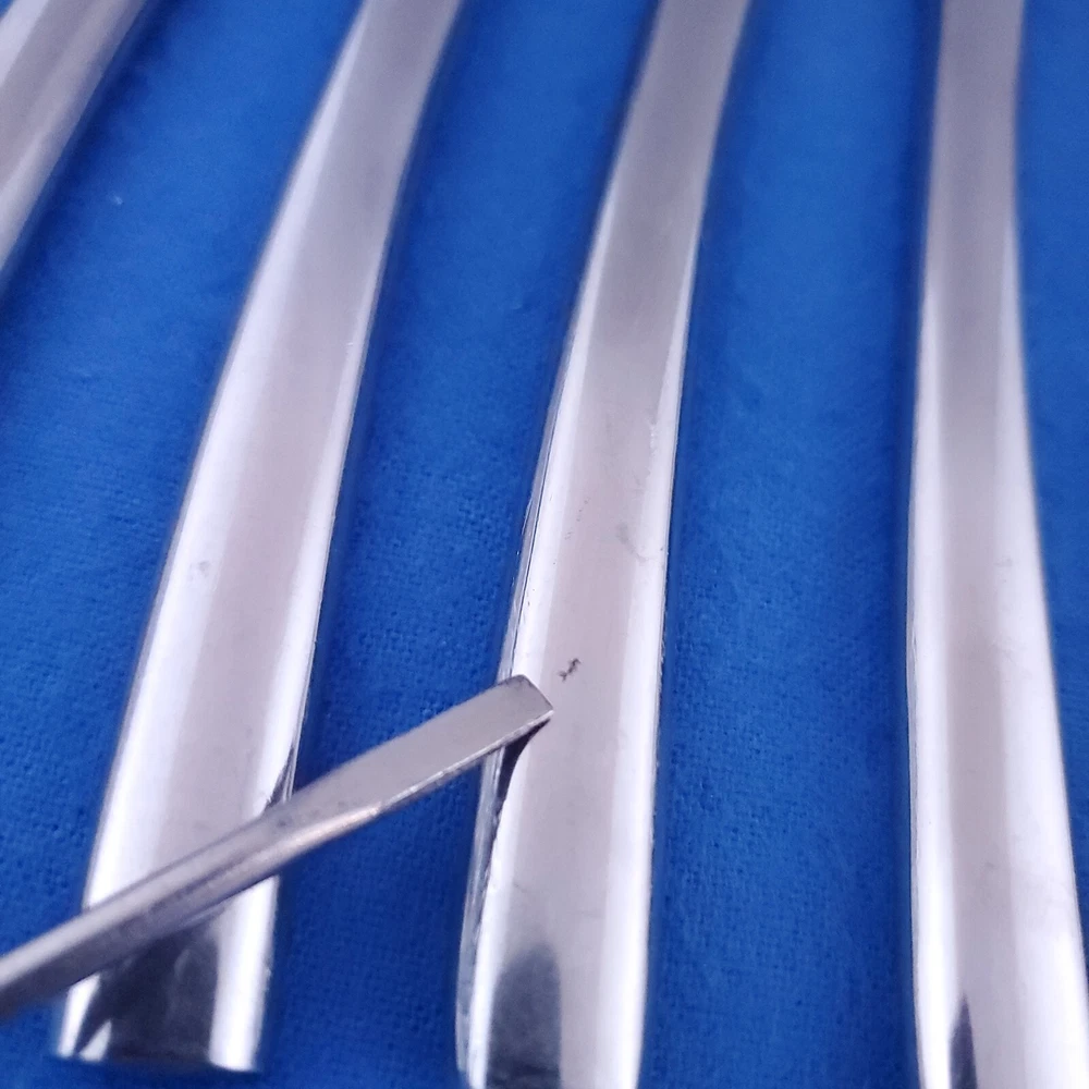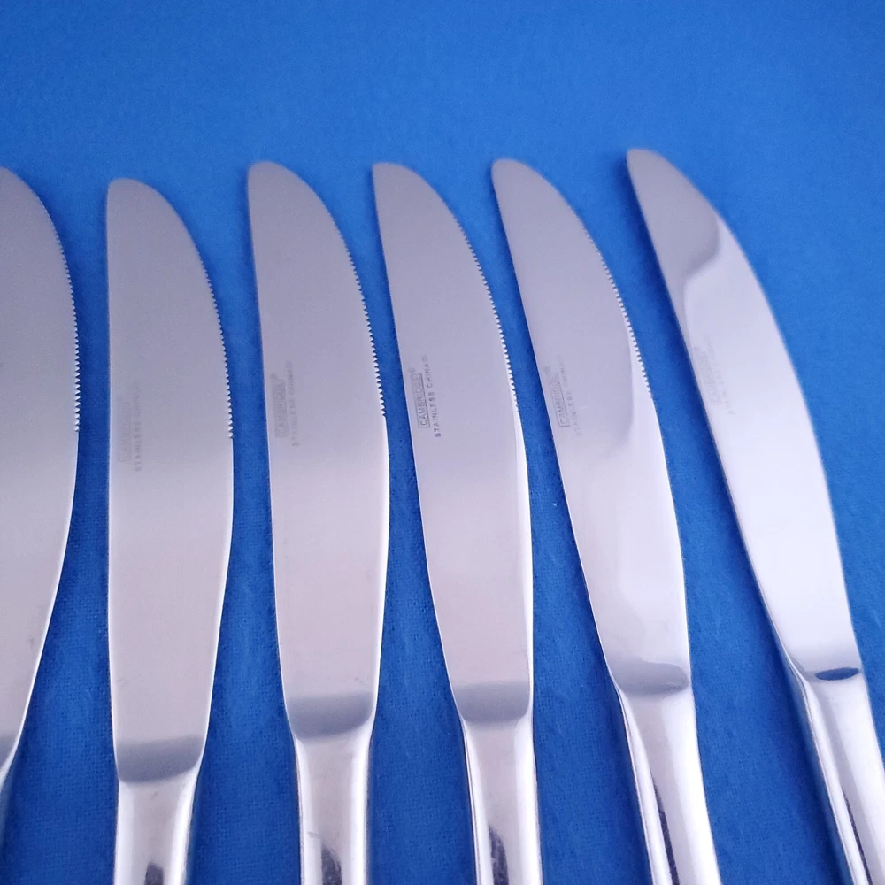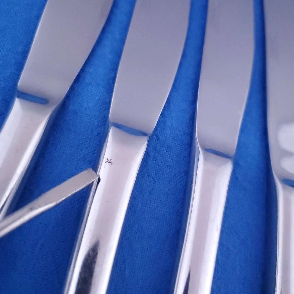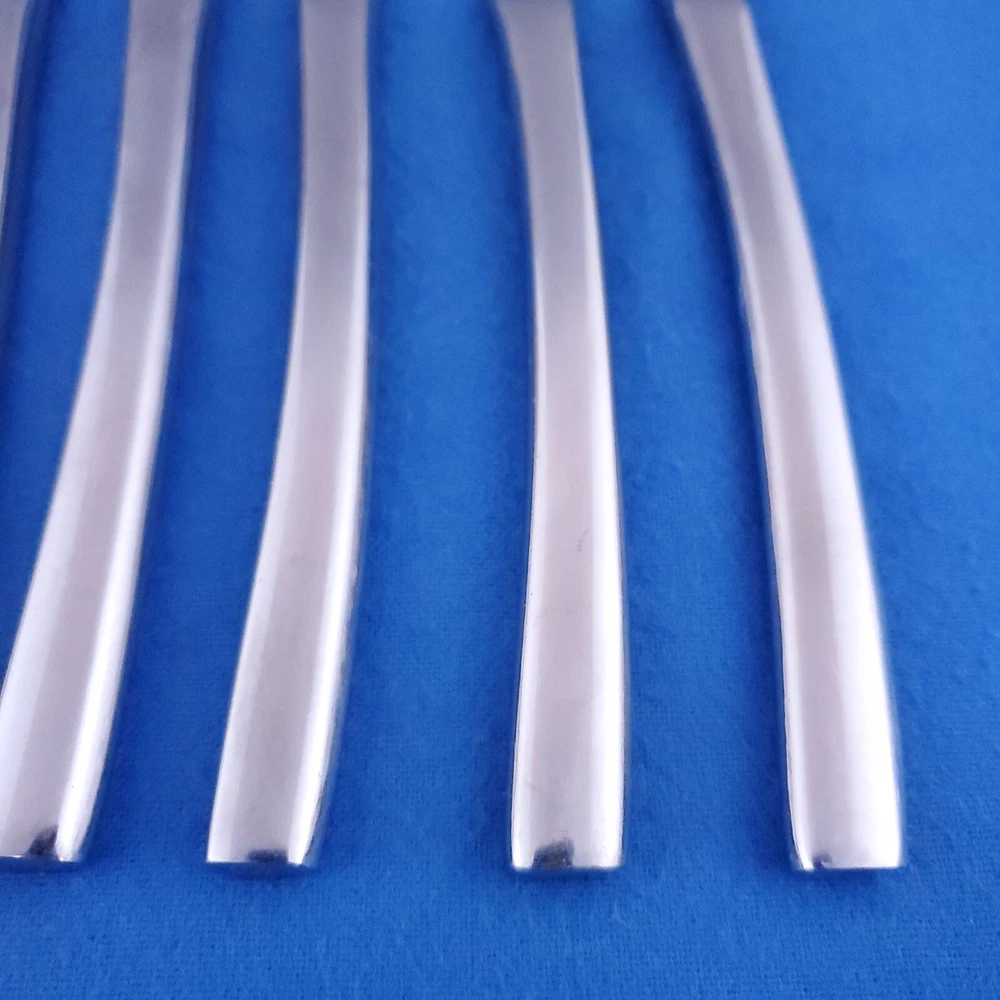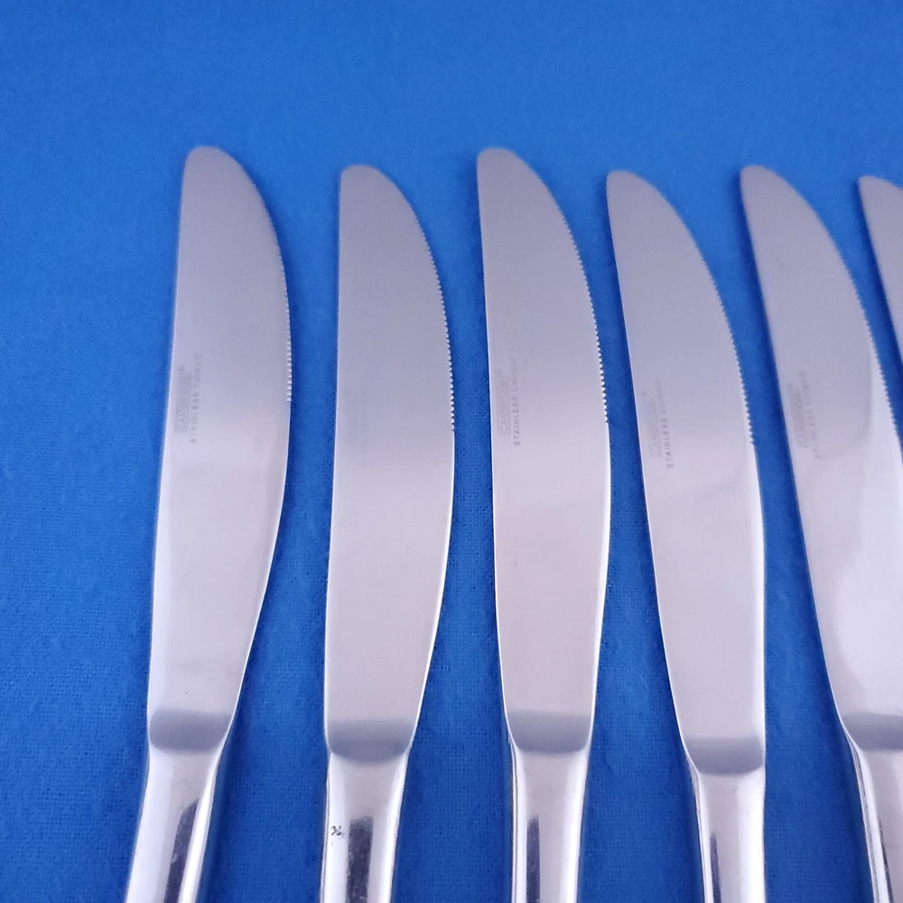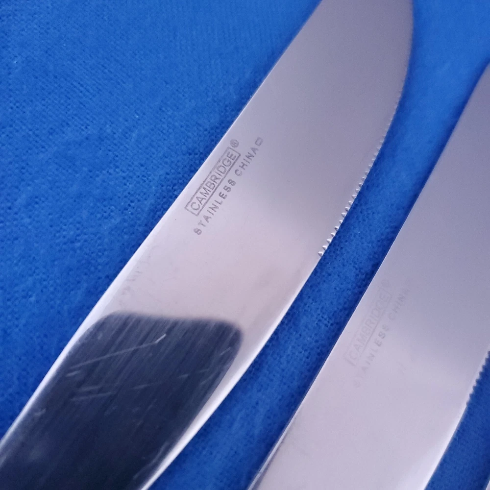 Cambridge CBS114 Stainless ~ (8) Dinner Forks 9" ~ Flatware In Well Used condition. There are some nicks, scuffs and scratches consistent with daily use. *A Couple knives have small spots of pitting (see photos).* Please view the photos carefully for condition details. Don't forget to check out my shop for more pieces in this pattern. Thank you for looking! Have a great day!