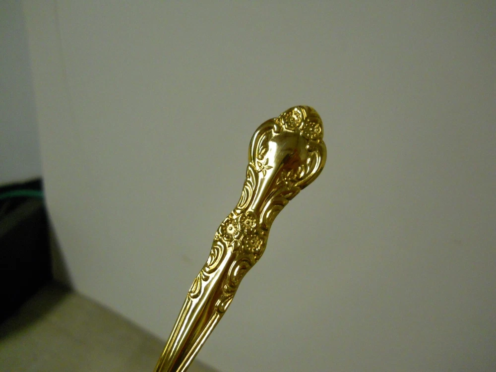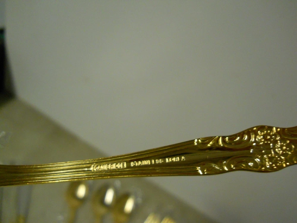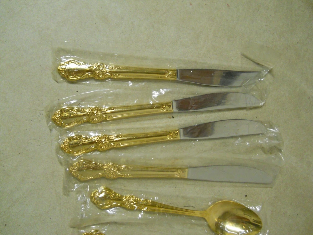 Cambridge Gold Plated Stainless Steel Flatware Replacements Extras Korea New old stock. In original plastic bags. Not sure the name of the pattern. Set includes: 4- Oval place soup spoons 7" 4- Solid handle dinner knives 8-3/4" 4- Dinner forks 7-1/2" Great for replacements or extras for your existing set. ******************************************* *************** PLEASE READ : I buy mostly estates, close outs, shelf pulls, and auction items. As the history of the item is not always known. I will describe all of my items listed to the best of my ability, if there are any flaws to the item it will be noted in the listing and photos of the flaw shown. At times I may miss a flaw, as I am only human. Please contact me and I will make it right and make sure that you are happy with you interaction and purchase from Big Man Tim's Treasures. Please see all photos and ask any qu estions BEFORE purchasing. FREE SHIPPING! Love this item? Check out the other items in my Ebay store! Please check back on a regular basis, as we list new items daily!! 121724EP warehouse