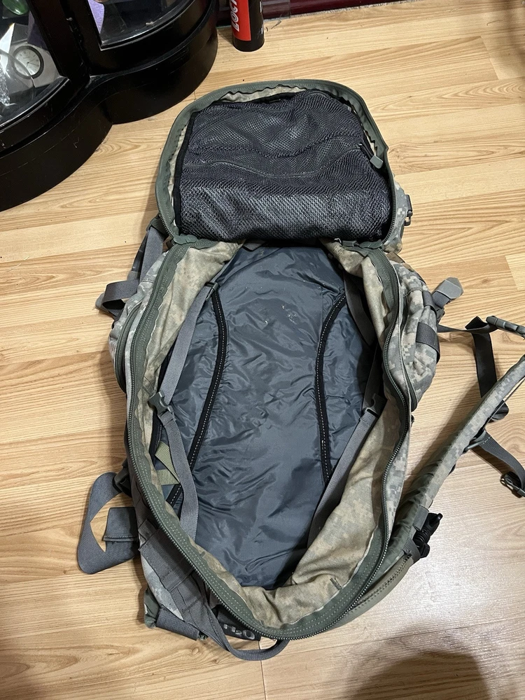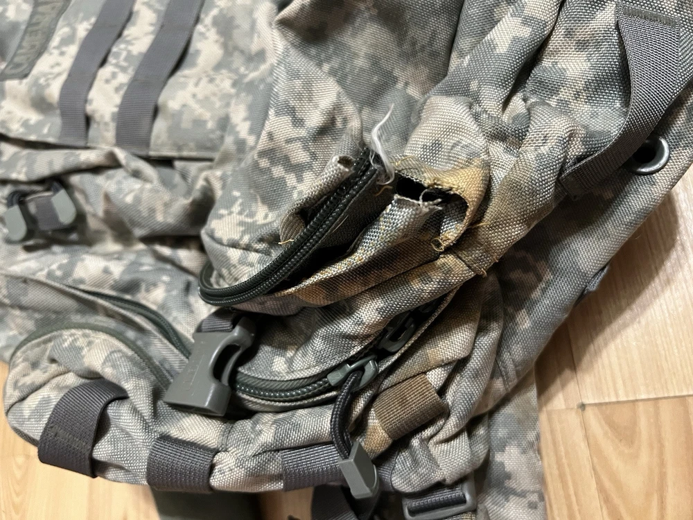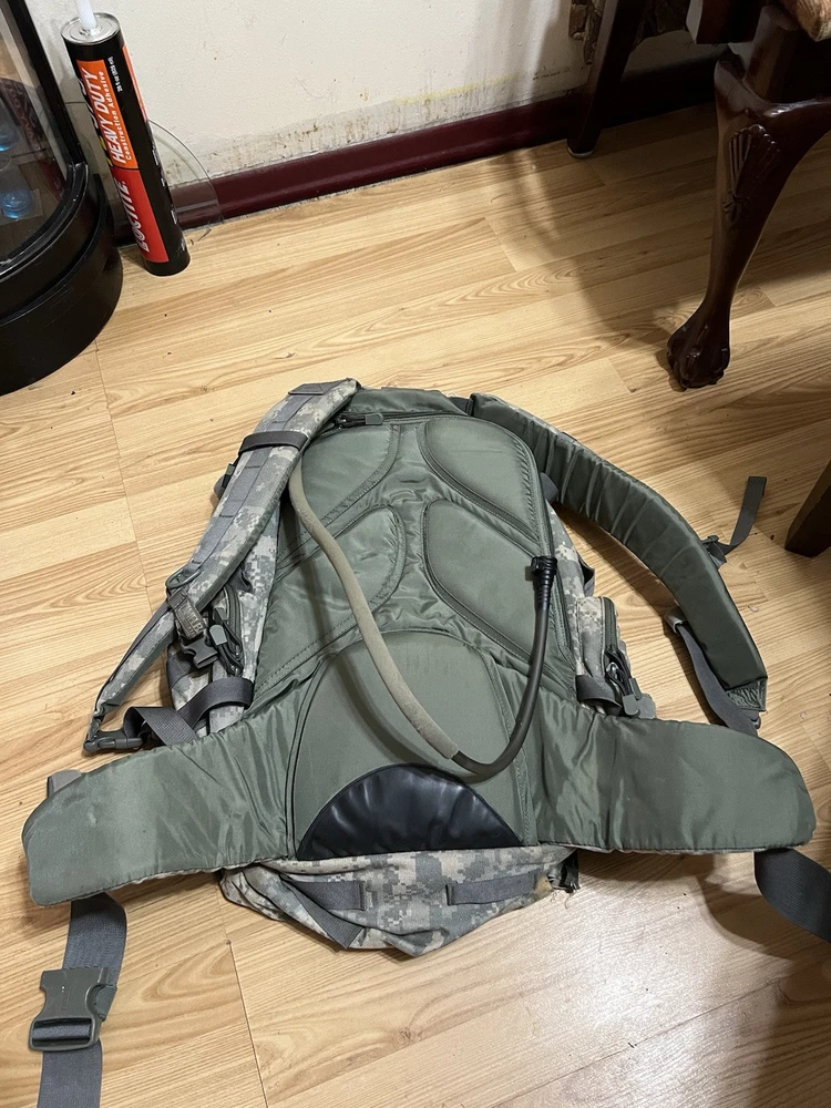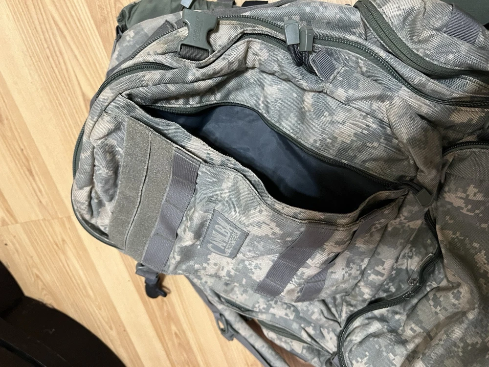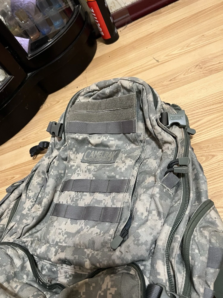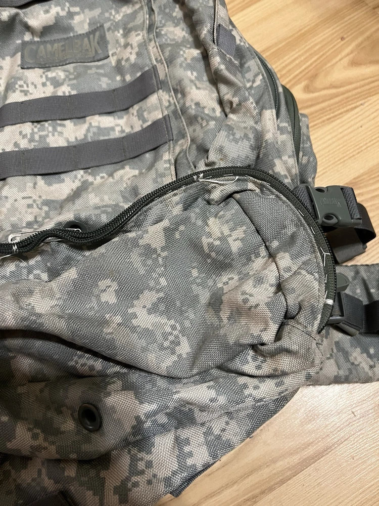 CamelBak Maximum Gear Cordura Military Style H2O Backpack Digital Camo Pack Missing bladder and the bottom pocket on the last two pictures is ripped and zipper is broken. That pocket is the only one that is messed up.