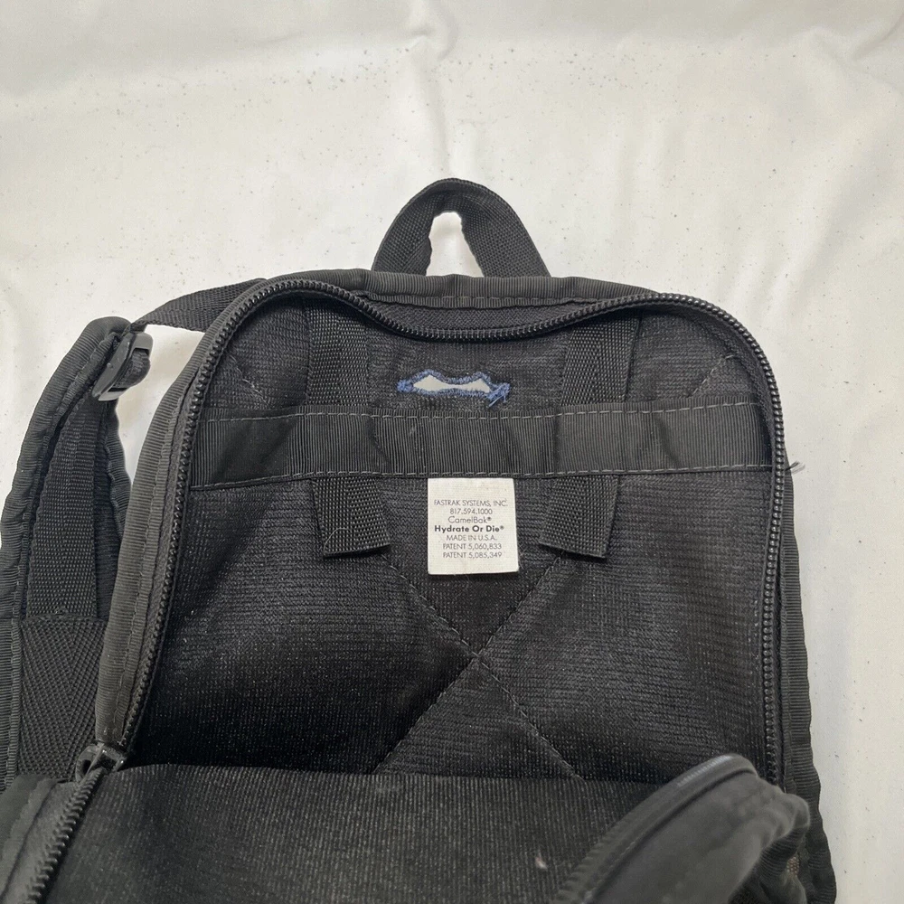 The CamelBak MULE Hydration Backpack is designed for hiking and backpacking, suitable for both men and women. It features a 100 oz. hydration pack in a military tan color, although the bladder is not included. The backpack has a zip closure and comes in black, beige, and blue colors. It offers padded straps, adjustable sizing, and external pockets for added convenience during outdoor activities. This CamelBak backpack is a practical and comfortable choice for staying hydrated on the go. Great, preowned condition. Some wear, but plenty of life left.