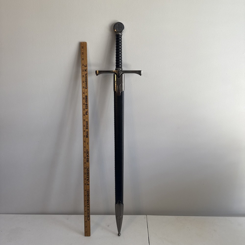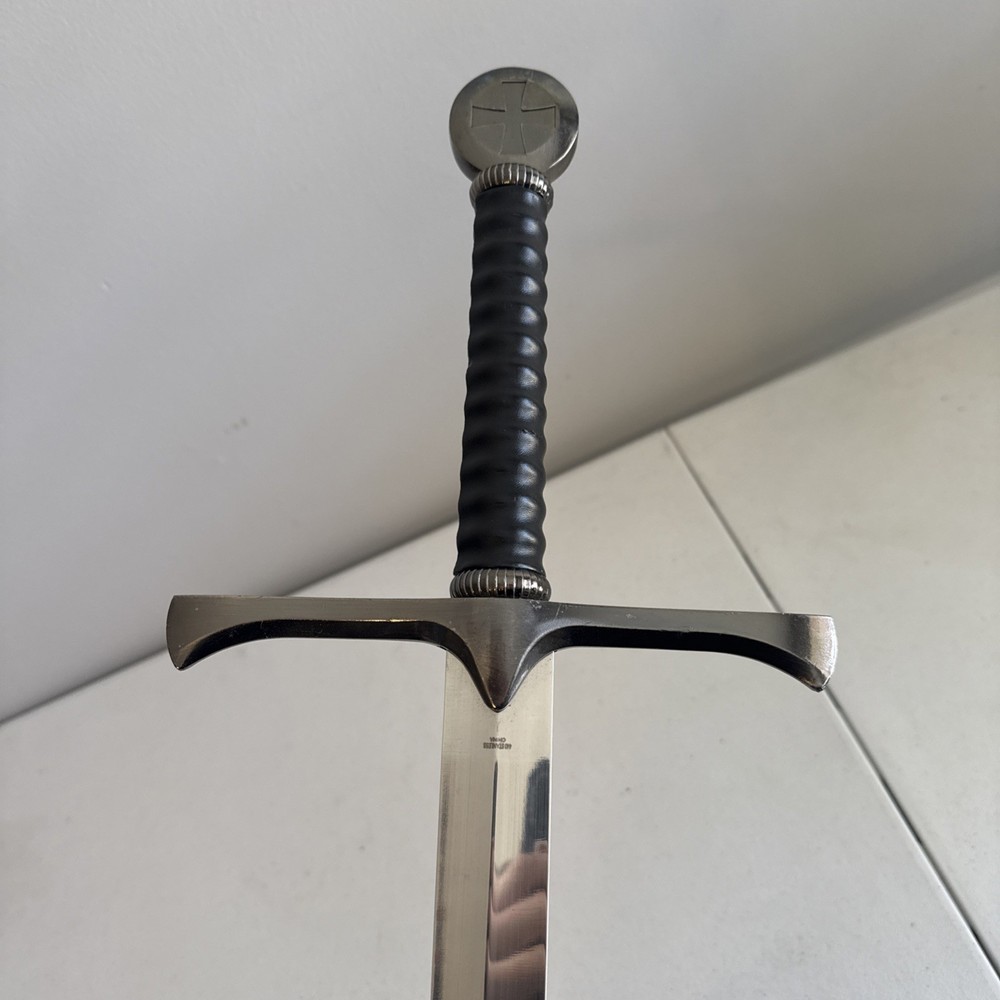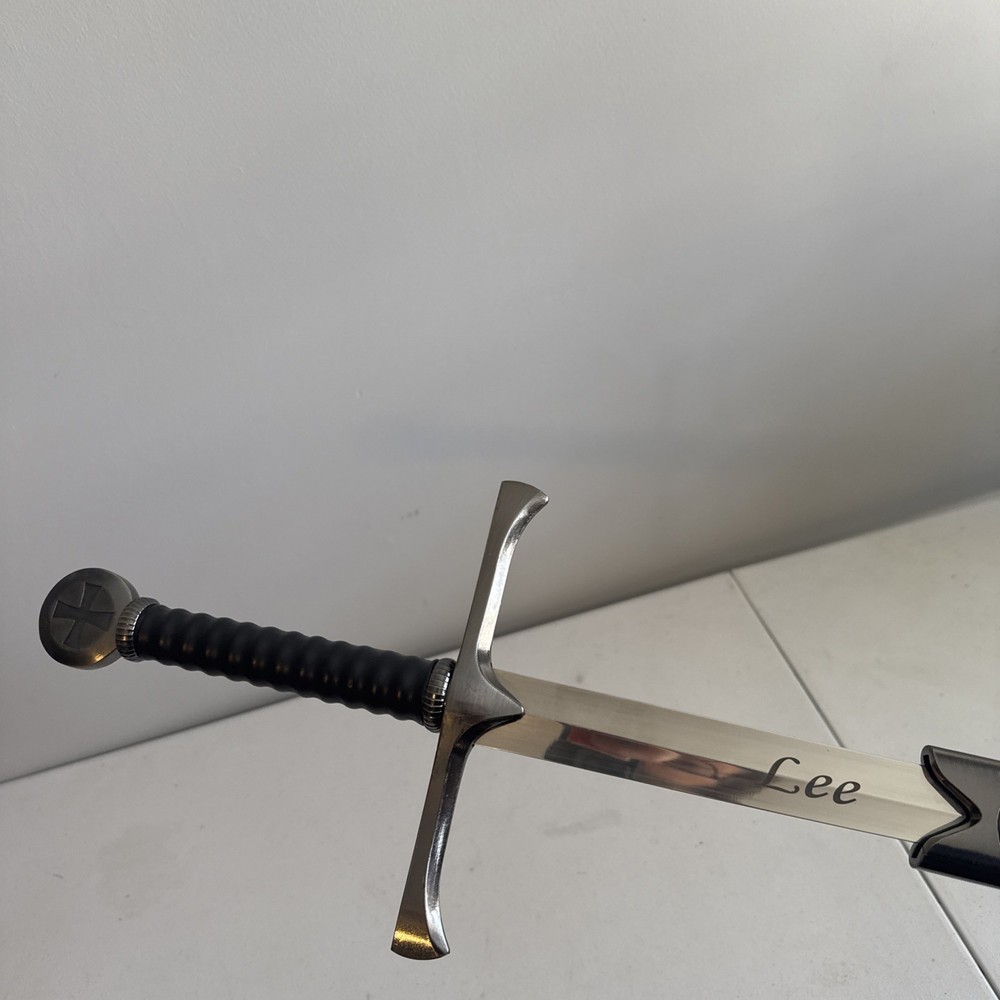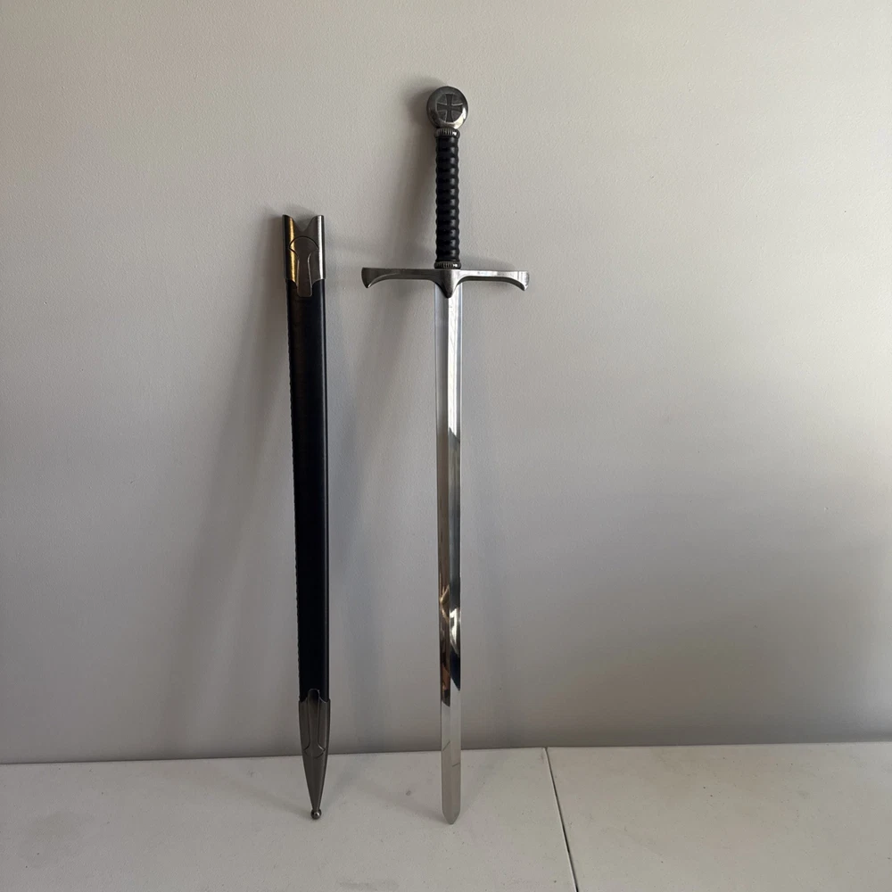 This Camelot Replica King Arthur Sword is a stainless steel cosplay prop decor inspired by the famous King Arthur theme. The sword features a full tang design with an ambidextrous handle made of stainless steel, maintaining the original look and feel. The silver color adds a touch of authenticity to this collectible piece, perfect for fans of King Arthur legends and fantasy enthusiasts. This replica sword is a must-have for those seeking a high-quality and visually appealing piece for display or cosplay purposes.