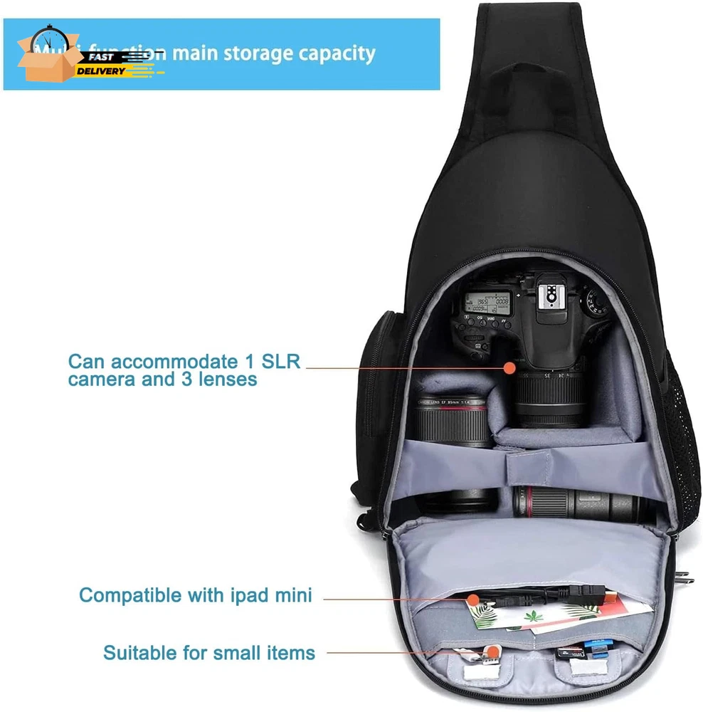 Store New Arrivals Add to Favorite View Feedback Contact Camera Bag Sling Backpack, Full Open Camera Case with Tripod Holder&Rain Description Item model number MOCAMSLFLOPBG001 Color Black Product Dimensions 5.9 x 9.5 x 15.5 inches Country of Origin China Item Weight 1.79 pounds Department unisex-adult Outer Dimension: 15.5 x 9.5 x 5.9 inches (HxLxW). This durable camera bag contains several compartments for camera, phone, accessories and personal belongings. The back pocket is compatible with most 8-10 inch tablets. 3 parts on the front: the main larger inside storage case with belt (inner dimension: 12.5 x 8.2 x 4.1 inch) is separated with removable inserts modular to fit various lenses and flash units; other 2 compartments (1 inside,1 outside) with demision of 8.2 x 7 inch for any needed accessories,like cable, cellphone, keys, wallet, card. Tripod holder is featured on one mesh net pocekt. Other smaller items can be kept in another side small pouch bag with zipper. 2 parts on the back, 1 hidden anti-theft zippered pocket on the back for your precious items, 1 vertical zipper bag can store the rain cover which comes with this camera sling bag. The soft flexible padded crossbody shoulder strap varied from 32.5 to maximum 41.5 inch can be adjusted per personal preference. Suitable for men and women - camera enthusiasts. The sling design makes it quick to turn from your back to the front for easy quick access to the camera. This multifunctional sling camera shoulder bag is professionally designed for DSLR / SLR / Mirrorless cameras of different brands. Compatible with Nikon D5300, D5600, D3400, D3200, D3300, compatible with Canon EOS Rebel T6, T6i, SL2 and other standard-size DSLRs. Product Description MOSISO Camera Sling Bag Backpack Full Open Camera Case with Tripod Holder & Rain Cover & Modular Insert Outer Dimension: 15.5 x 9.5 x 5.9 inches (H x L x W). This multifunctional sling camera shoulder bag is professionally designed for DSLR / SLR / Mirrorless cameras of different brands. The main back pocket is compatible with most 8-10 inch tablets. 1 hidden anti-theft zippered pocket on the back for your precious items. Multi Back Pockets 3 parts on the front: the main larger inside storage case with belt (inner dimension: 12.5 x 8.2 x 4.1 inch) is separated with removable inserts modular to fit various lenses and flash units. Two Side Pocket The soft flexible padded crossbody shoulder strap varied from 32.5 to maximum 41.5 inch can be adjusted per personal preference. Sling design makes it quick to turn from your back to the front for easy quick access to the camera. With Rain Cover This durable polyester camera bag contains several compartments for camera, phone, accessories and personal belongings. 1 vertical zipper bag can store the rain cover which comes with this camera sling bag. ABOUT US We offer the best prices around on high quality products. Our E-store includes media such as books, movies, music and games while offering electronics, toys, sporting apparel, clothing, tools, general home, garden items and more. SHIPPING We are always working hard to ensure your package arrives as soon as possible. Please understand that some factors like weather, high postal traffic, and the performance of shipping companies are outside of our control. We offer free shipping to the lower 48 states and ship within 2 business days of payment, usually sooner. We do not accept P.O. Boxes. Please provide a physical address. For shipping outside of the continental USA, we only use eBay's Global Shipping Program.The item is shipped to KY and then sent to the rest of the world. International customers are responsible for all duties and taxes. Continue to check out in order to calculate costs for shipping the item to your country. Messages regarding eBay's Global Shipping Program MUST be directed at eBay EXCLUSIVELY. RETURNS We offer a 30-Day Return Policy on items which you are not completely satisfied with. You have the option for a full-refund or an exchange of the item. No returns are available on items shipped outside of the USA. PAYMENT We accept PayPal. CONTACT US This page content is yet to come Please ad us to your favorite seller and visit again later Thank You CUSTOMER SATISFACTION We try our very best to make sure every customer is completely satisfied. If there's a problem, message us! We're happy to help. WE ACCEPT Copyright © 2021 AutoDS. | All Rights Reserved