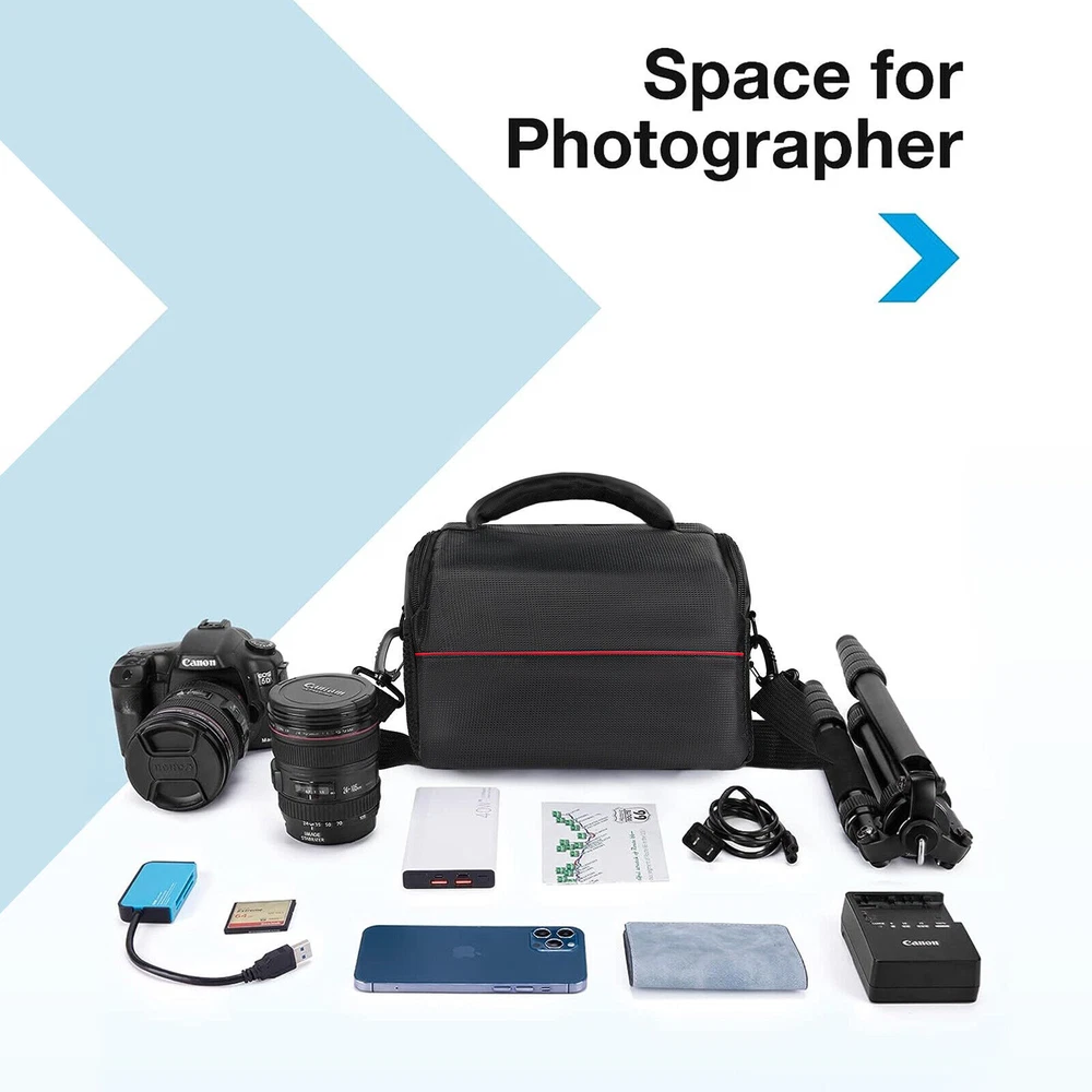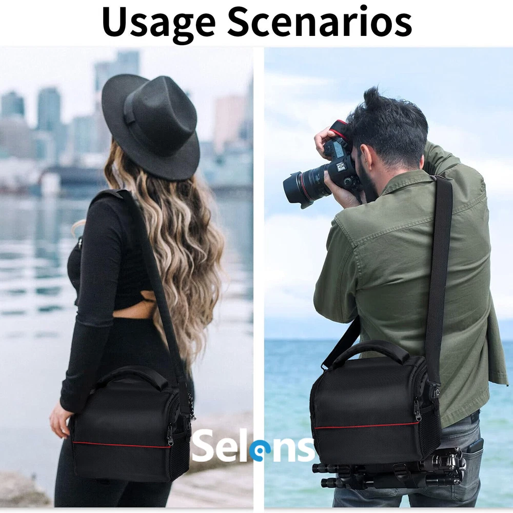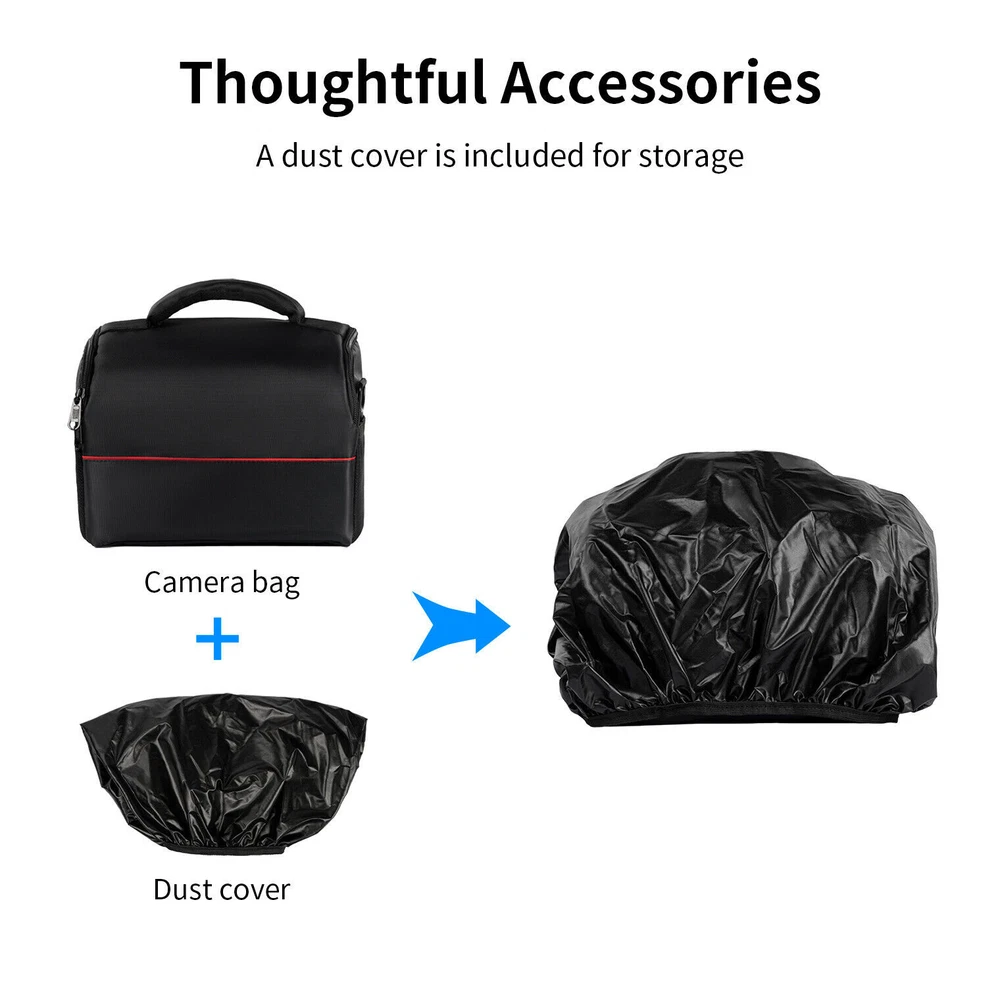 Black Camera Bag Case Shoulder Large DSLR Pouch Zipper Lens For Canon Nikon Item properties: Material:Nylon Length: 9.8 In Width:8.7 In Height : 6.1In Color :Black To Fit:For Canon, For Nikon, For Sony Features: 【Camera Protection】: The versatile camera bag's camera protection system consists of thick padding that you can rely on to keep your kit safe. All exterior fabrics have been treated to make them waterproof and a dust cover is also provided. 【Large Storage Space】: 1removable dividers allow you to customize the main compartment to fit your gear. There are two straps on the back so you can take your favorite little tripod with you. The flap opens away from your body so it's not hindered when you need to move quickly. 【What To Carry】: Specially designed for DSLRs, each intuitive design element is made for total functionality, and it has multiple compartments to neatly pack your mirrorless or entry level DSLR camera, additional lens, accessories, batteries and memory cards. 【User Friendly】: Travel and transport your gear in style. This is a compact camera bag that makes it easy to carry your camera and essentials hands-free, making it ideal for travel and commuting. Ideal gift for men and women. 【Travel Friendly】: 100% brand new and high quality Fashionable and unique design Grid fabric shoulder pouch for digital camera Buckle closures ensure your devices stay safe and proper in the bag Adjustable shoulder strap for your easy and convenient use Soft lining provides great cushioning effect Protect your camera from damage, dust and scratches Package including: 1x Camera Bag 1x Sponge Separator 1x Strap 1x Dust Cover On Dec 16, 2024 at 05:14:25 PST, seller added the following information: