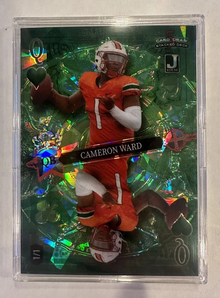 Cameron Ward Wild Card Football Queen Of Hearts Green Ice 1/1 Card Miami π₯ Shipped USPS Ground If you have any questions send me a message