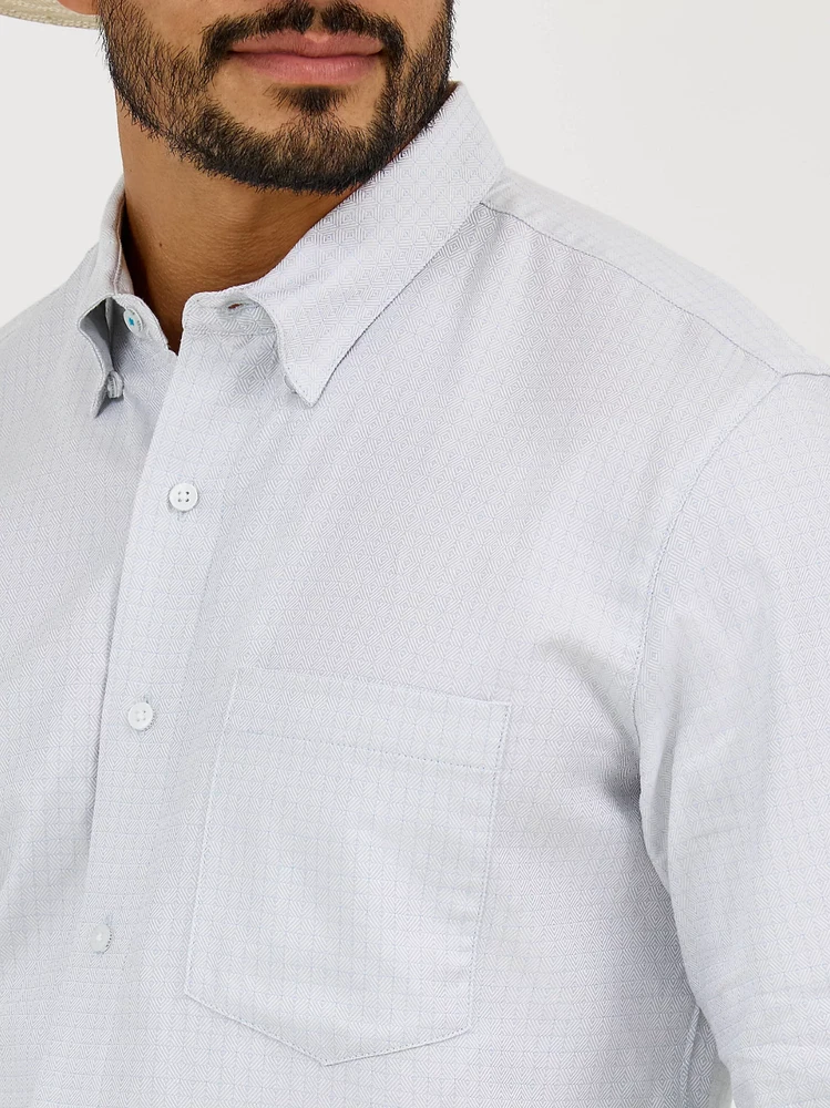 Men's Wrangler Cody Johnson One Pocket Button Down Shirt Comfort, Grey Minicheck Look sharp while feeling ready for anything in our Cody Johnson One Pocket Button Down Shirt. Inspired and worn by CoJo himself, this collared shirt delivers comfort and style without compromise. A true western original, it’s crafted from cotton for softness and an airy feel from season to season. It features long sleeves, one chest pocket, a hidden button-down collar, and mitered cuffs with the country music star’s signature logo. And its classic fit will seem as if it was made just for you. Fit: Classic Sleeve Length: Long Front Closure: Buttons Front Pockets: One Front Chest Pocket Collar: Hidden Button Down Cuff: Single Button Note: -We do not ship to warehouse addresses -We do not ship to island addresses -We do not ship to Po Box addresses
