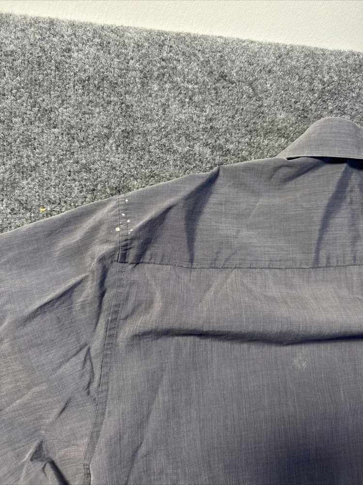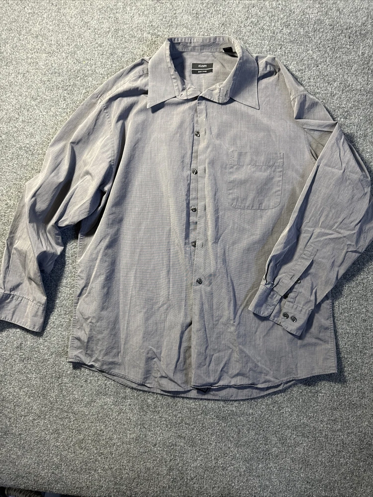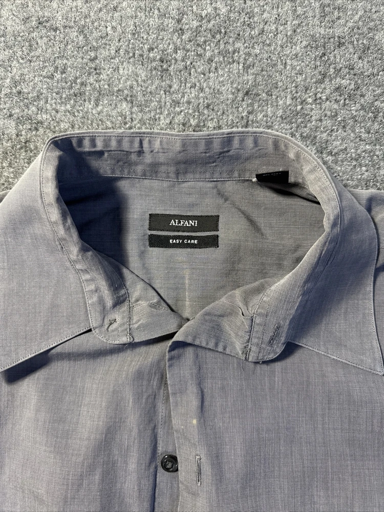 Elevate your professional wardrobe with this Alfani dress shirt in a classic gray color. The long sleeve and regular fit design ensures both comfort and style, while the XL size accommodates a variety of body types. This dress shirt is perfect for any occasion, whether it be a formal event or a day at the office. Pair it with your favorite suit or dress pants to complete the look. Some stains as seen in photos, priced accordingly.