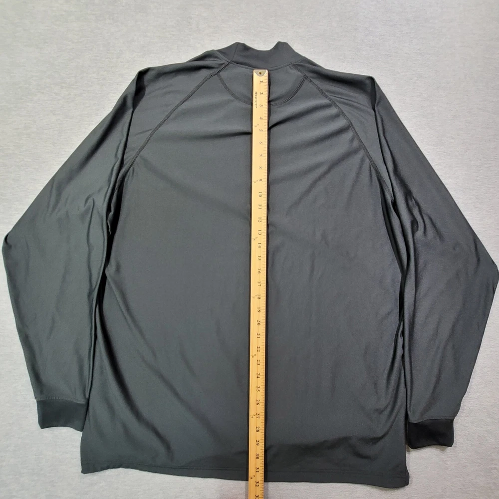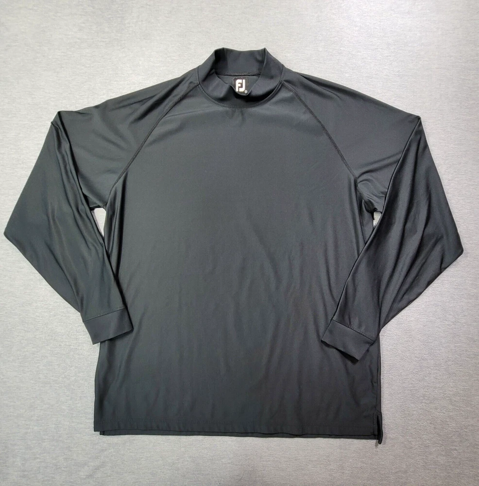 Crafted for comfort and performance, the FootJoy Men's T-Shirt is an ideal choice for those who value both style and substance. This 2XL black mock neck tee is designed with an athletic fit in mind, ensuring freedom of movement and mild compression to support your muscles during golf or other activities. The long sleeves and heavyweight fabric provide warmth and durability, making it a versatile addition to your activewear collection. The blend of polyester and spandex materials offers flexibility and a snug fit, while the solid black color ensures easy pairing with a variety of bottoms. The stand-up collar adds a touch of sophistication to the pullover style, making it a reliable option for any casual or athletic occasion. Enjoy the combination of functionality and sleek design in this essential piece from FootJoy's lineup.
