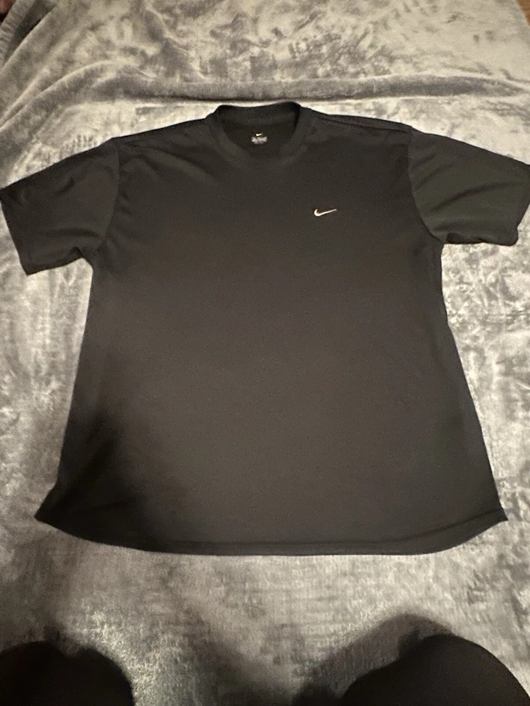 Department:MenEstado del artículo:De segunda mano - buenoMaterial:PolyesterSleeve Length:Short SleeveNeckline:Crew NeckSize Type:RegularPattern:SolidSize:XLType:T-ShirtColor:BlackOccasion:ActivewearVintage:NoBrand:Nike