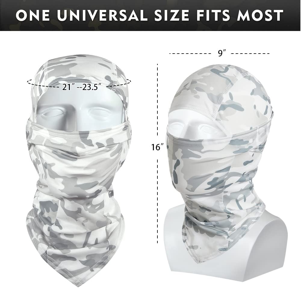 Why Choose Camo Cooling Balaclava Ski Face Mask? Key Features Ice Silk Fabric Material, Balaclava with soft, breathable, moisture wicking material, Comfortable 4-way stretch polyester-spandex material ,Comfort and breathable,One size fits most, Take it with it while keeping your head relaxed New Style Design Our Triangular shape extended neckline and contoured head design provide full coverage for maximum sun protection,Wind -proof and dust -proofand is ideal for wearing under a helmet. This Versatile Can be worn as a full-face mask, a partial face mask, or as a neck gaiter. Making it a great option for a variety of activities such as cycling, snow skiing, snowboarding, snowmobiling, fishing, hiking, hunting, or motorcycle riding. Specifications: Material:85% Polyester, 15% Spandex Hood size :40cm x 23cm,Weight:1.3 ounce Package:1pcs Balaclava Hood Attention Please: You choose our order to buy, to protect your interests.We try our best to provide the satisfactory service for you If you have any questions about our products and service, please contact us by E-mail, We will reply as soon as possible and solve your problem Ice Silk Fabric Material:Comfortable and Breathable 85%Polyester, 15%Spandex.High Elasticity, Soft and Cooling, Extremus material of lightweight balaclava is also rated UPF 50 offering skin protection from the sun’s harmful rays. Balaclava Ultimate Versatility:Sun UV protection, summer cooling, windbreak, dust proof and sand control, sweat absorption and quick drying, wrinkle free and machine washable Multiple Wearable Methods:Headband as you like Great for outdoor activities,Can be worn as opened or closed balaclavas, face masks, neck gaiters, scarfs, bandanas, helmet liners, headbands Camouflage Designed:New triangular scarf design, Exquisite wiring,windproof and ear protection,One size fits all, perfect fit for Men and Women, Pattern blends in well Great Gift Idea Too: while you are at it, grab a few packs for your family, friends, or loved ones as a gift a great gift to runners, athletes, fitness workouts, hiking,cycling, or anyone!