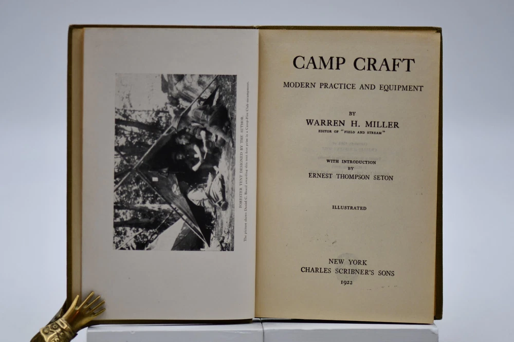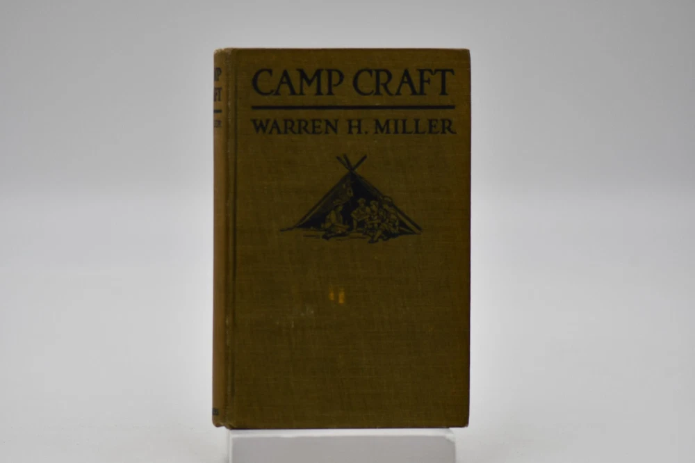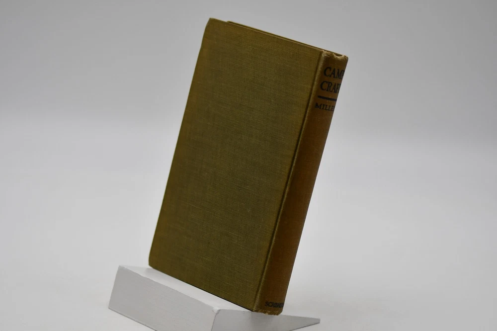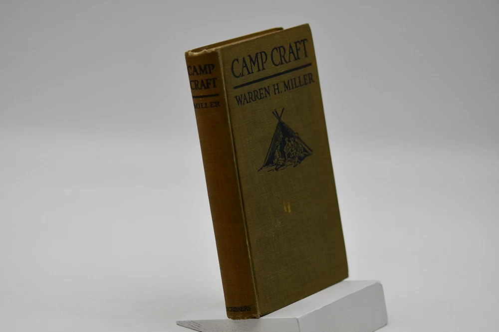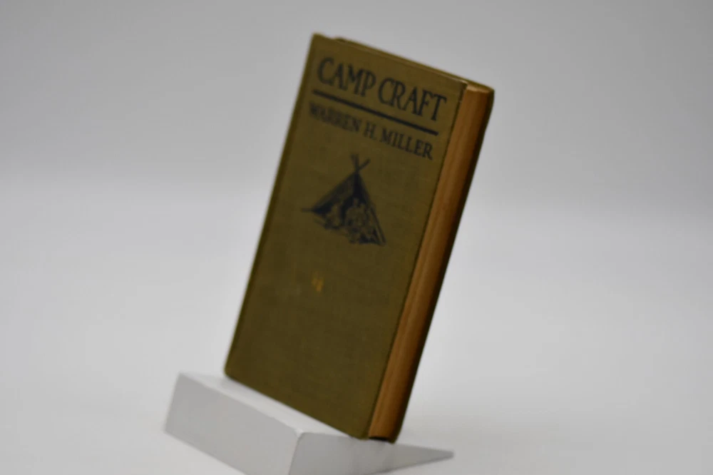 First published in 1915 “This book tells about the simple, inexpensive ways of getting the pleasures and benefits of camping out and avoiding the serious discomforts and danger.” Across sixteen chapters Miller covers: Kinds of Camps, Tents’ Eliminating the Blanket, Getting Away from the Browse Bed, The Camp-Fire, Cook-Kits and Cook-Fires, The Chef on the Trail, Trail Accessories, In Emergency, Taking the Family Along, Western Camping, The Lone Jack Diamon Hitch Tents and Clothing, Getting on Your Feet, Camp Comforts, Camp Organizations and Build Yourself a Permanent Camp. With over forty black and white photographs, hitch illustrations and introduction by Ernest Thompson Seton, this rare antique book is a wonderful addition to the outdoor persons library (but it should be noted that some text and naming would not be in common use today). While outdoor gear has progressed to new high-tech standards this book is still considered one of the best “how to” camping books for the adventurer that takes the road less traveled. Warren Hastings Miller (1878 – 1960) offered much to this American life. A graduate of Stevens Institute of Technology in 1898 with a degree in Mechanical Engineering from 1900 to 1908 he worked for a variety of companies but then went to Paris to be a writer. His writing career started as the editor of “Field and Stream”, and later vice president of its publishing company from 1910 to 1918. During the Spanish-American War at Santiago, Cuba he served as an ensign and was a naval lieutenant in World War I. In 1921 to gather material for a series of novels and travel stories, he made a 15,000-mile trip to New Guinea, Java, Borneo, and Sumatra after he had signed a contract with Harper & Brother. He was the author of thirty-two books including numerous pulp fiction books but he also wrote books on camping, hunting, fishing, dogs, and boating. Even with his busy travel and writing schedule he is also remembered today as the designer, promotor, of the Forester tent. Condition: Olive green cloth hardbound boards with blind stamped black text and camp tent image to the front board that are in very nice condition only a small cosmetic blemish to the front board. The spine back strip has slight wear to the top edge but is otherwise in very good condition – straight with strong hinges and no cracking to the endpapers. Corners have a small slant but are sharp at the tips. Text block is solid and all pages are firmly attached including glossy black and white photos. Age tanning throughout. Interior pages are clean with no tears, cracks, or previous owner marks. 282 pages. Dimensions: H – 7-1/2” W – 5”