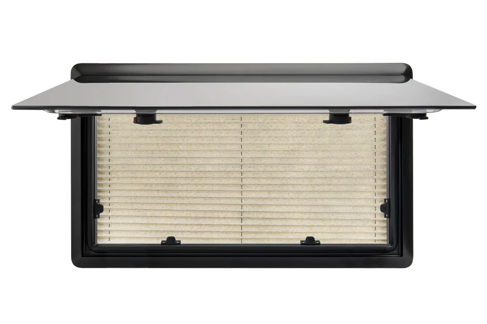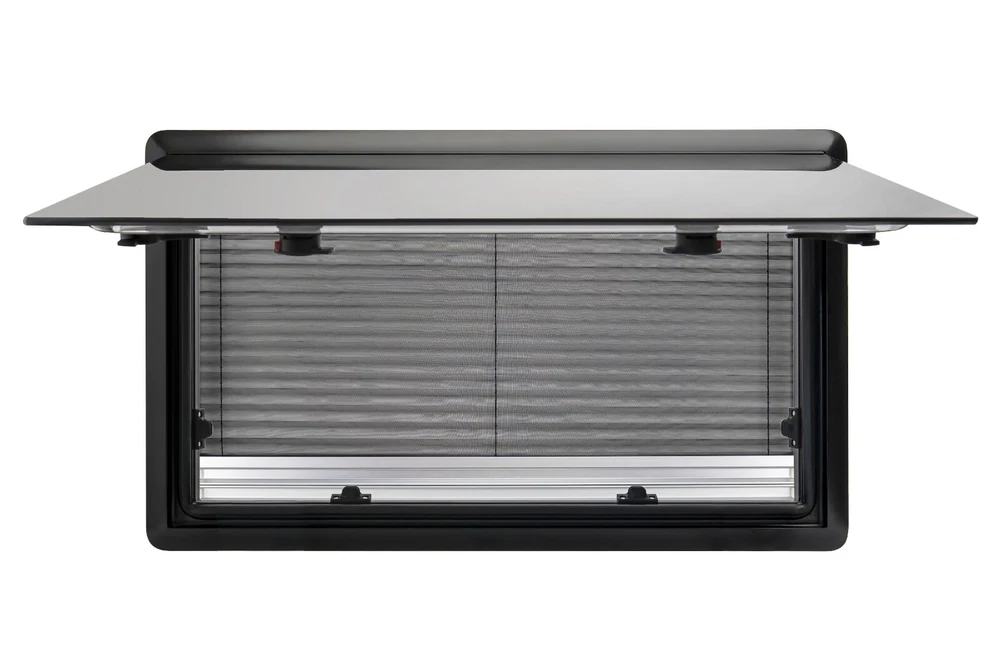 Camper Van RV Hinged Window 900 x 450mm / Double Walled + Roller Blind Screen