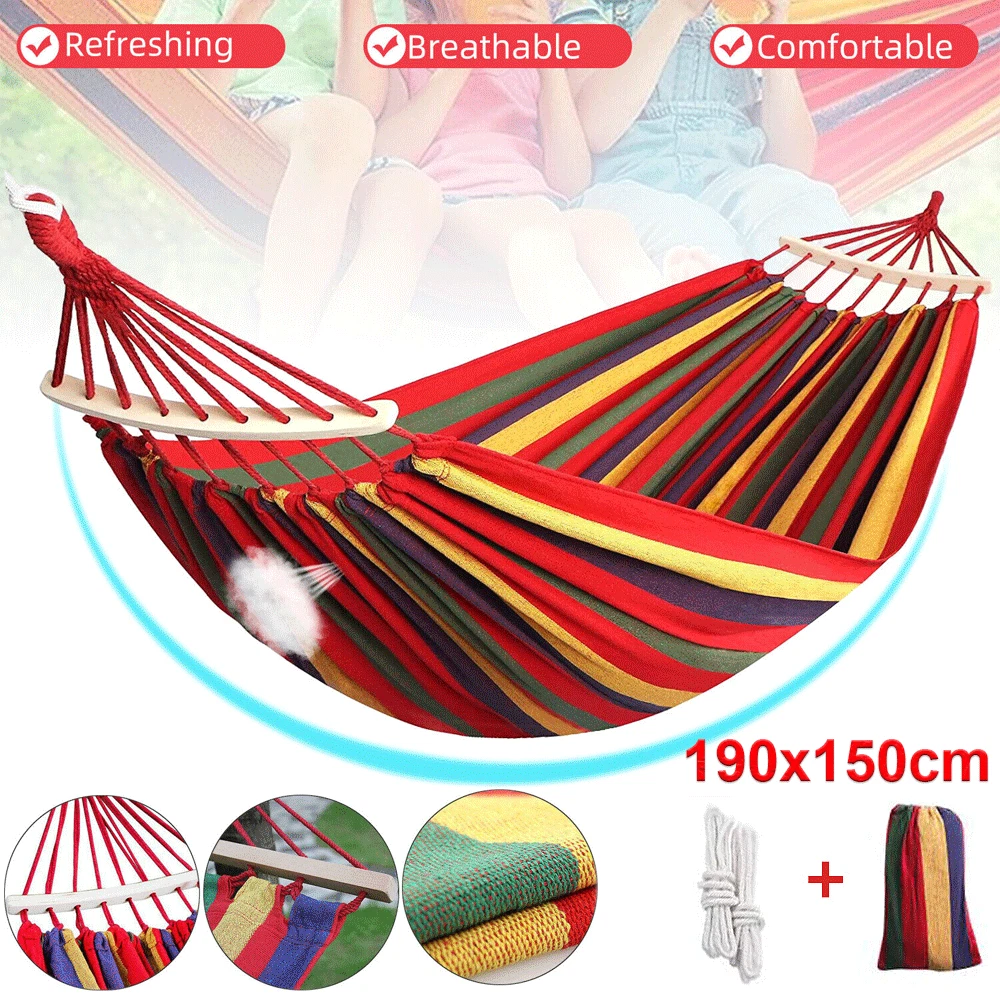 Camping Hammock Chair Bed Outdoor Hanging Swing Sleeping Garden Outdoor 1Person Features: COTTON HAMMOCK - Our camping hammocks are made of a special high-density breathable canvas fabric as material, crease proof, pleasant to looking and feels comfortable, the single and double hammocks can support 573 lbs EASY TO INSTALL - Quickly install the hammock and use the straps to hang the camping hammock on the tree or the hammock stand in 3 minutes. You can also quickly store the hammock and parts in the bag quickly PORTABLE HAMMOCK - Compacts to a backpack friendly, portable size for your convenience, you can take them anywhere PACKAGE INCLUDE - Includes one double camping hammock, two tree straps (each 7ft long). The double hammock is 75inch long by 59inch wide Package Included: 1x Hammock 2x Straps 1x Carrying Bag Payment Shipping Return Contact us About us Payment 1.Paypal, Credit Card, G Pay etc, many payment way is accepted. 2.Please be sure your shipping address is correct before make a payment. Shipping 1.We will ship out the item within 1-3 business days after comfirming the payment, appreciate your patience. 2.If the items are broken on the way( we will check the orders clearly before we sent them ),please contact us in 3 days you received it. We will send you a new one or refund your payment. Return 1.We stand behind every buyer.Items can be returned for exchange or refund within 30 days. 2.Please contact us when you have any confusion of our item, we will solve the trouble for you as soon as possible. Contact us 1.This is professional Seller.We will reply your message within 24 hours. 2.Please contact us whenever you have any question about the item. We will deal with it as soon as possible. 3. If you are unhappy with the item or our service,please Contact Us before leave feedback,just give me a chance,thank you! About us 1. Unless specified otherwise, all our products are IN STOCK and are shipped from Local warehouse - Not Overseas! 2. We provide a 30 day Satisfaction Guarantee or your money back (provided items are in the same new and resaleable condition.) 3. We have a PayPal Verified Business Account, please buy with Confidence! 4. Every item will be tesrted before send.We know our products well and if we don't have the answers we will do our best to find them for you! 5. Our friendly team look forward to serving you! Your satisfaction is our No.1 Priority We will do our best to satisfacy you. Brand Unbranded Type Camping Hammock Department Kids, Adult Manufacturer Warranty 1 Year Indoor/Outdoor Indoor & Outdoor Model Hanging Hammock MPN Does not apply Year Manufactured 2024 Features Double, Portable Material Canvas Seating Capacity 1-2 Weight Capacity 573lb