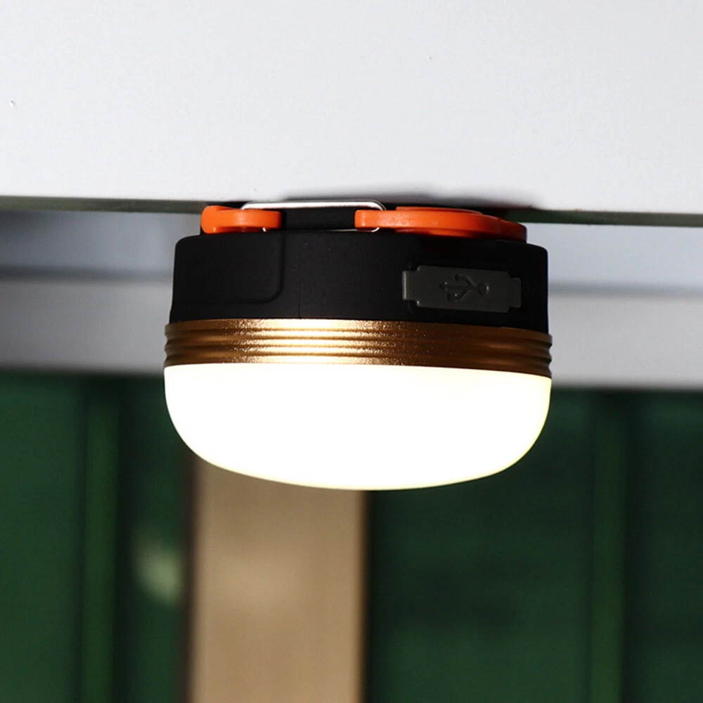 Features: 【 Excellent Lighting 】 5 high-strength LED chips with a high output of 300LM. The frosted sphere emits a large amount of light, providing a wide field of view and easily illuminating the entire room. Just press and hold the button to adjust the amount of light, and there are three lighting modes available: strong light, weak light, and flash mode to meet your different lighting needs. 【 Lightweight and Portable 】 This small camping light weighs only 4.46 ounces - compact, lightweight, space saving, and easy to carry, making it the perfect travel size. Multifunctional foldable hook, can be hung on tents or trees, has magnetism, can adsorb metal surfaces, and liberate hands. The extremely lightweight design is also suitable for young children, making it an excellent gift for those you love. 【 Charging and Mobile Power Supply 】 Built in 1800mAh lithium-ion rechargeable battery with USB charging, no need to replace the battery. After being fully charged, the continuous lighting lasts for more than 6 hours. Camping lights can also be used as mobile power sources to charge mobile phones in emergency situations. 【 Durable and waterproof 】 Made of high-quality ABS material, it has low power consumption, ensuring long-term durability and is waterproof, heat-resistant, and freezeproof, and faultless in harsh environments. Perfect for indoor or outdoor activities. 【 Multi purpose 】 An essential survival equipment for outdoor activities, perfect for camping, hiking, fishing, hunting, or night walking. Perfect emergency light for home power outages during hurricanes and storms. No matter where you live, everyone needs this reliable light. Specifications: Name: Multifunctional rechargeable tent light Material: ABS plastic+aviation aluminum alloy Light bulb: 5LED (COB) Light source: Warm light (4000k) Function: Strong light weak light burst USB output Power supply: Rechargeable lithium battery 1800mah Product specification: diameter 78mm, height approximately 45mm Features: 1. Emergency lighting, night lighting, outdoor leisure, camping, hiking, hunting, mountaineering, fishing, reading, etc. 2. Multipurpose LED camping lights, emergency night lights, desk lights, wall mounted lights, safe and energy-saving storage; Portable high brightness. 3. Used for camping, reading, dining tables, walls, boating, fishing, car repairs, etc. Product List: Camping light * 1 Charging cable * 1