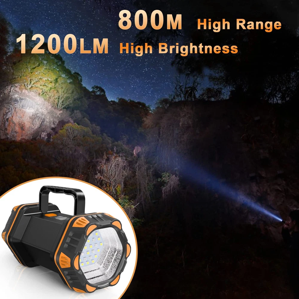 HIGH BRIGHTNESS: LED Flashlights high lumens rechargeable with L2 + 30 chip LED, large wide-angle irradiation range. This rechargeable lantern illuminating half a football field, and its irradiation distance can reach 800m 4800 CAPACITY POWER BANK: The flashlight lantern with USB port has a built-in 4800 capacity rechargeable battery. It can be fully charged in 4 hours, and it can work continuously for 16 hours outdoors IP65 WATERPROOF: The camping lantern can resist rain splashing in all directions. At the same time, the LED lantern has a rubber anti-fall lamp cap, which has the function of anti-fall and anti-vibration, and can be used in extreme environments 4+4 Lights Modes: This camping flashlight has front, back lamp heads and side lights, including red warning and strobe lights, and a total of 8 lighting modes. The -button rubber switch can satisfy the needs of turning on modes at the same time CUSTOMER CARE SERVICE: We are committed to providing great lighting. If you encounter any problems, You can reach out to us. Please with confidence. Note: a usb C to usb C cable won't recognize the device. You will need to use a usb A to usb C cable to charge the lantern