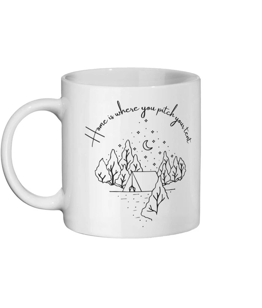 Camping Lover Gift Camping Mug Home Is Where You Pitch Your Tent Traveller Gift Traveling Lover Mug Adventure Lover Gift Wilderness Product Details.. This high quality 11oz. ceramic white mug has a premium hard coat that provides crisp and vibrant color reproduction sure to last for years. Perfect for all hot & cold beverages. The highest quality printing possible is used. It will never fade no matter how many times you wash it. Material: 100% Ceramic. Print both sides. Dishwasher and Microwave Safe. High Gloss + Premium White Finish. Printed in the U.S.A. Personalized & Custom. We support personalized and custom mug to add custom, when placing an order, you can add notes to the "order note" in shipping address section. Also you can contact us directly via message. Shipping Info. Ready to ship in 1 to 2 business days, All products are made-to-order and proudly printed in the United States. Shipped by USPS and DHL, You will receive your order in 5-7 days. Replace & Refund. All products are defective during shipping broken, chipped will be replaced free of charge. You are not satisfied with the product, we will refund 100% money to you. If any other issues arise, please do not hesitate to message, we would be more than happy to assist you.