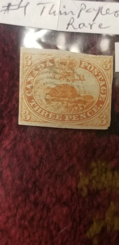 Canada 3 Cents Beaver Stamp Rare Thin Paper SC#4 Used Idtd3.