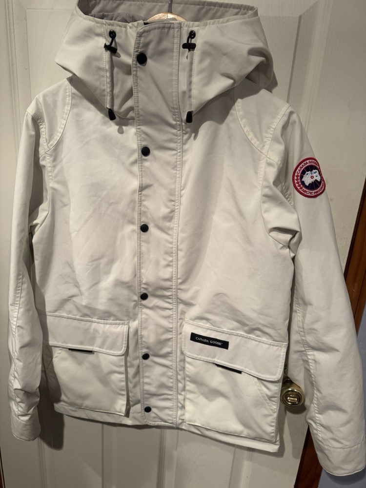 The Canada Goose White Expedition Parka for men is a stylish and oversized jacket made with durable nylon outer shell material. This parka features a classic white color and a regular fit in size S, perfect for cooler weather conditions. The Canada Goose Expedition model, known for its high-quality design and Canadian craftsmanship, offers both warmth and style for outdoor activities or everyday wear. With the brand's reputation for excellence in cold weather gear, this parka is a reliable choice for those seeking a versatile and reliable winter jacket.
