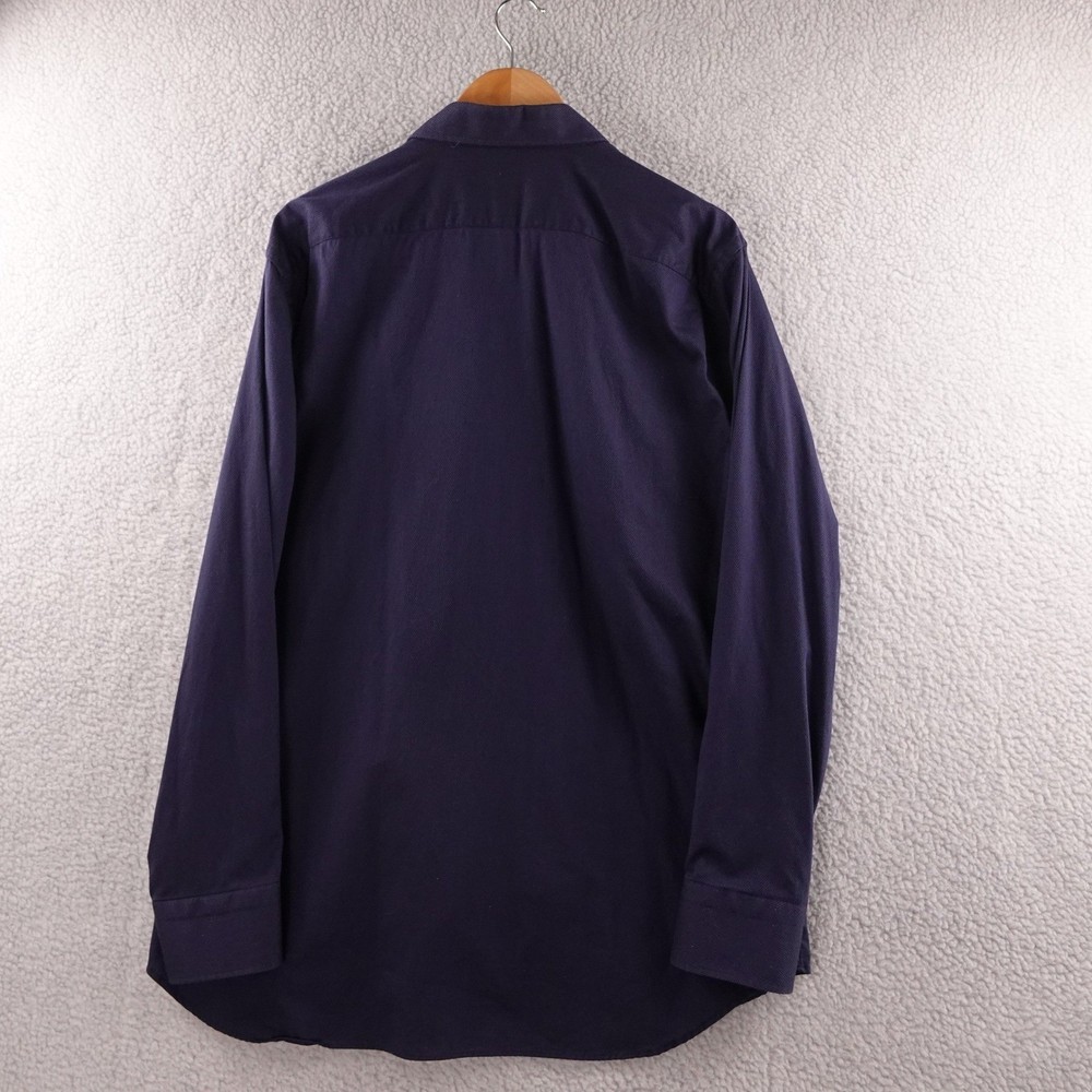 Elevate your professional wardrobe with this exquisite Canali 1934 dress shirt. Crafted in a rich navy blue, its subtle textured pattern adds a touch of sophisticated dimension. The crisp collar and precisely stitched buttons speak to the impeccable Italian tailoring, ensuring a sharp and polished appearance. Experience the luxurious feel of pure cotton designed for comfort and enduring style. Perfect for important business meetings, elegant dinners, or sophisticated evening events. Department: Men Neck Size: 18 in Fit: Slim Sleeve Length: Long Sleeve Type: Dress Shirt Pattern: Geometric Collar Style: Point Material: 100% Cotton Top Cuff Style: Barrel Cuff Features: Easy Care Neckline: Collared Closure: Button Fabric Type: Woven Accents: Button Occasion: Business, Workwear Chest Size: 46 in Keywords: Canali, dress shirt, menswear, Italian tailoring, textured fabric, formal shirt, business attire, luxury shirt, button down, smart casual, evening wear, premium cotton, tailored fit